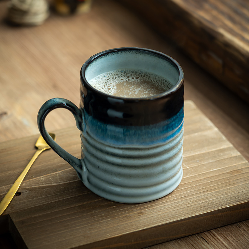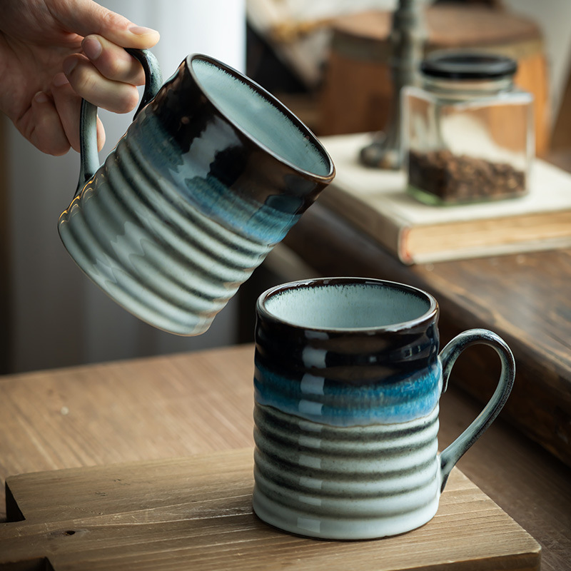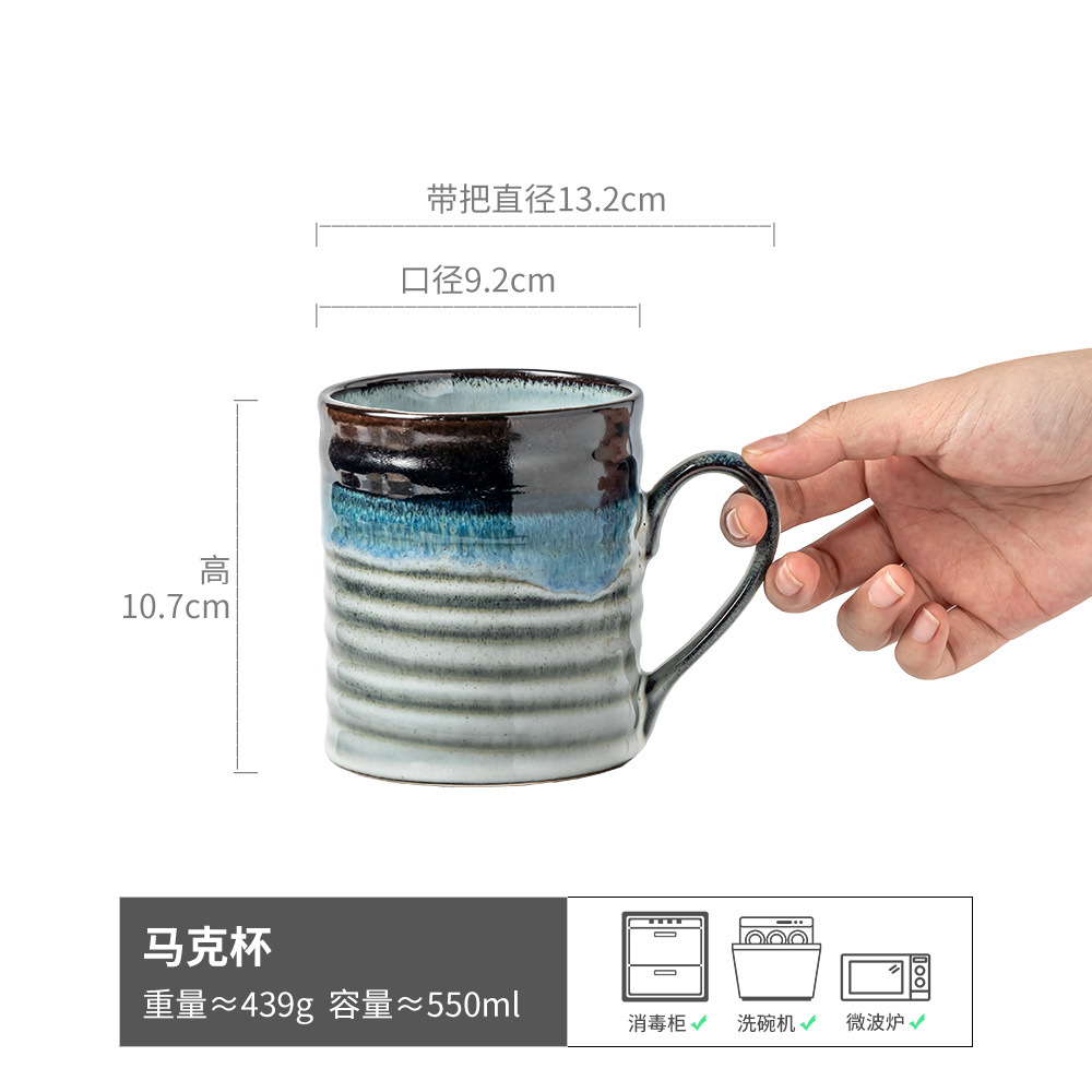 高颜值渐变窑变釉杯子复古陶瓷马克杯家用大容量浮雕咖啡杯牛奶杯