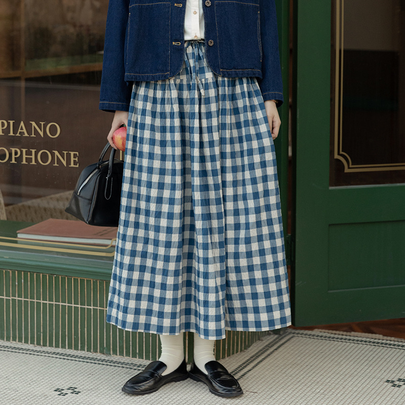 日系学院风裙子半身裙秋季新款高腰复古格纹显瘦大摆中长款伞裙女