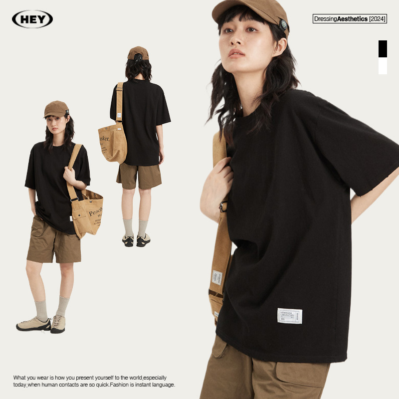 HeyHenry 男装夏季基础款oversize短袖T恤女宽松港风半袖上衣