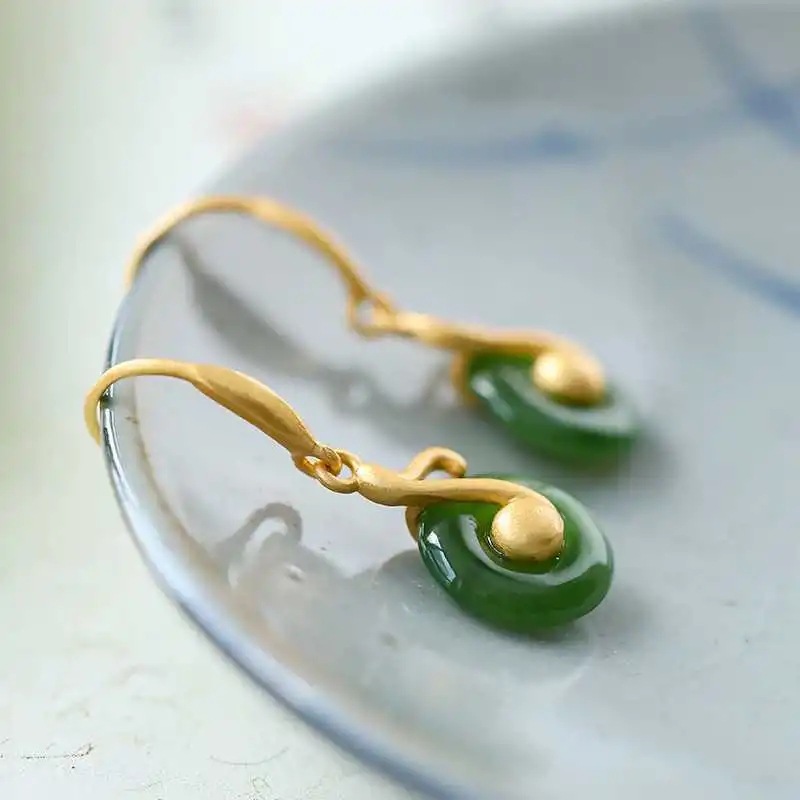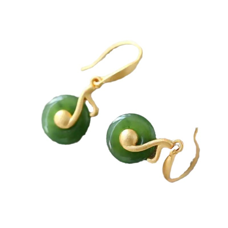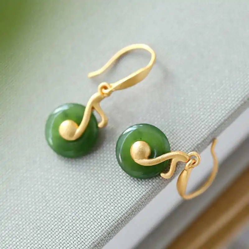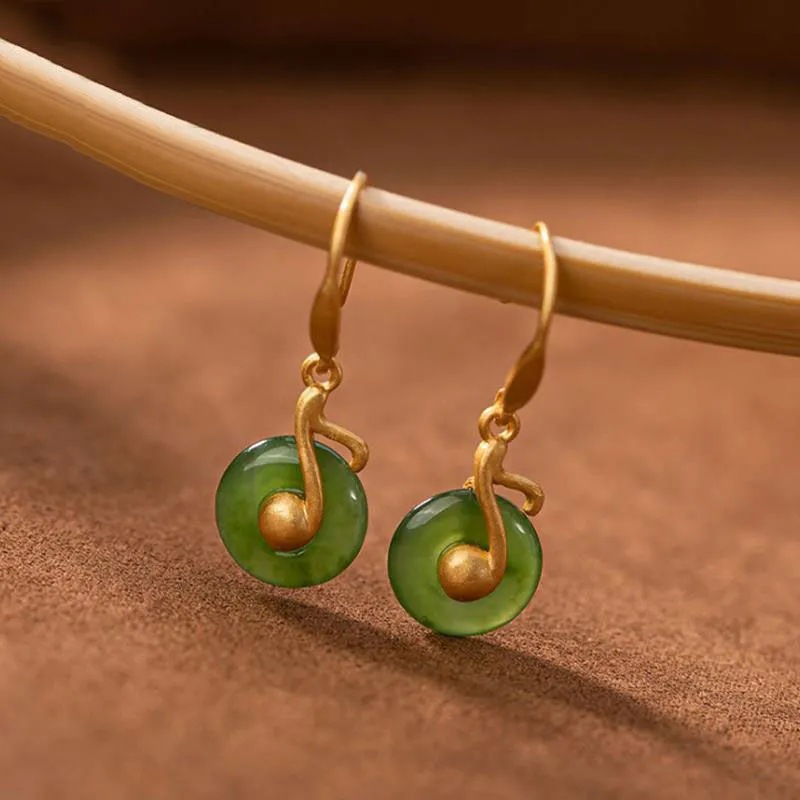 S925纯银镀金白玉碧玉平安扣气质女士音乐符耳环耳饰耳坠送女友