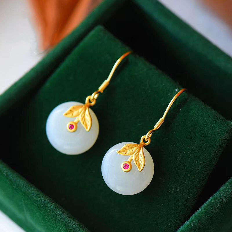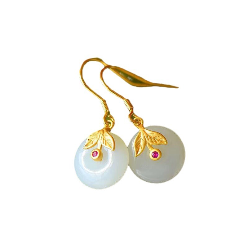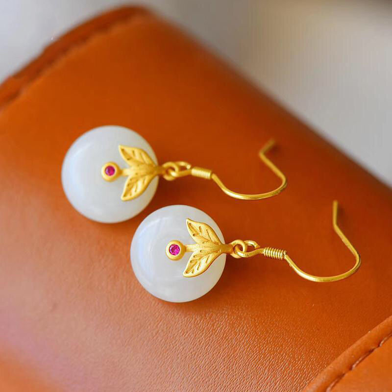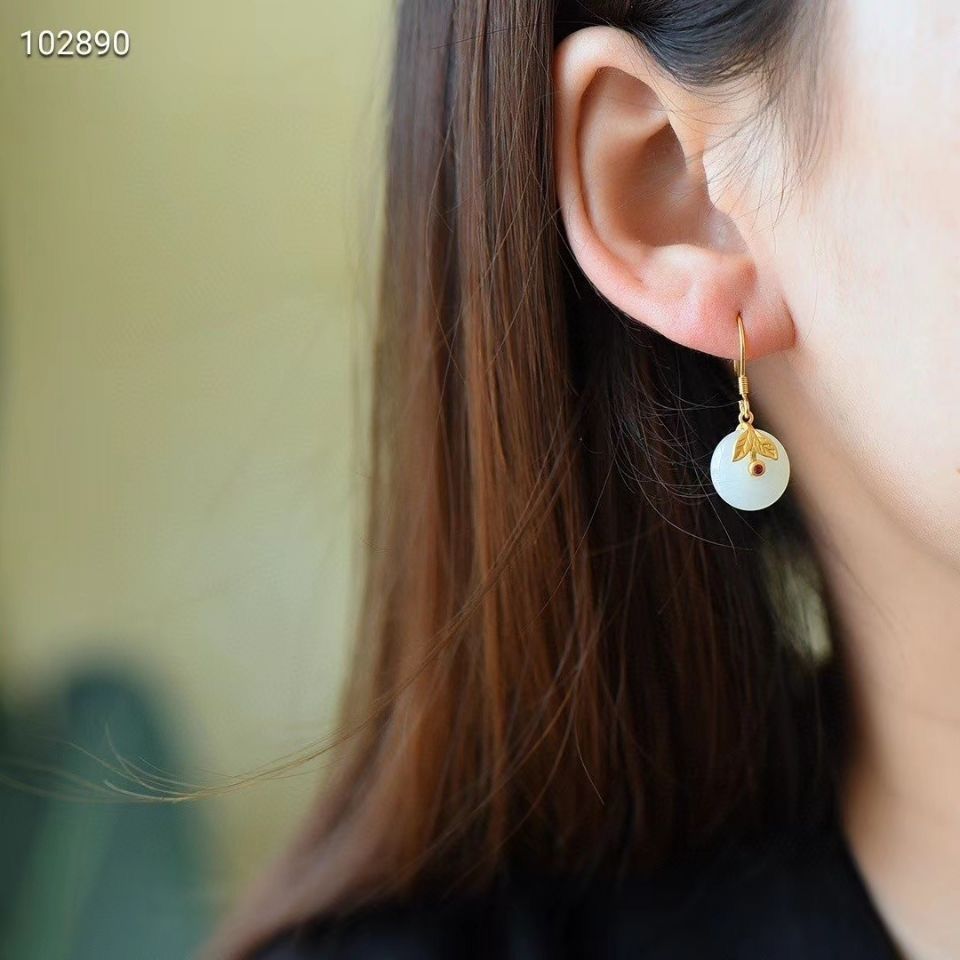 白玉镶嵌古法金沙金鎏金耳环平安扣工艺气质女神古风古典耳饰品