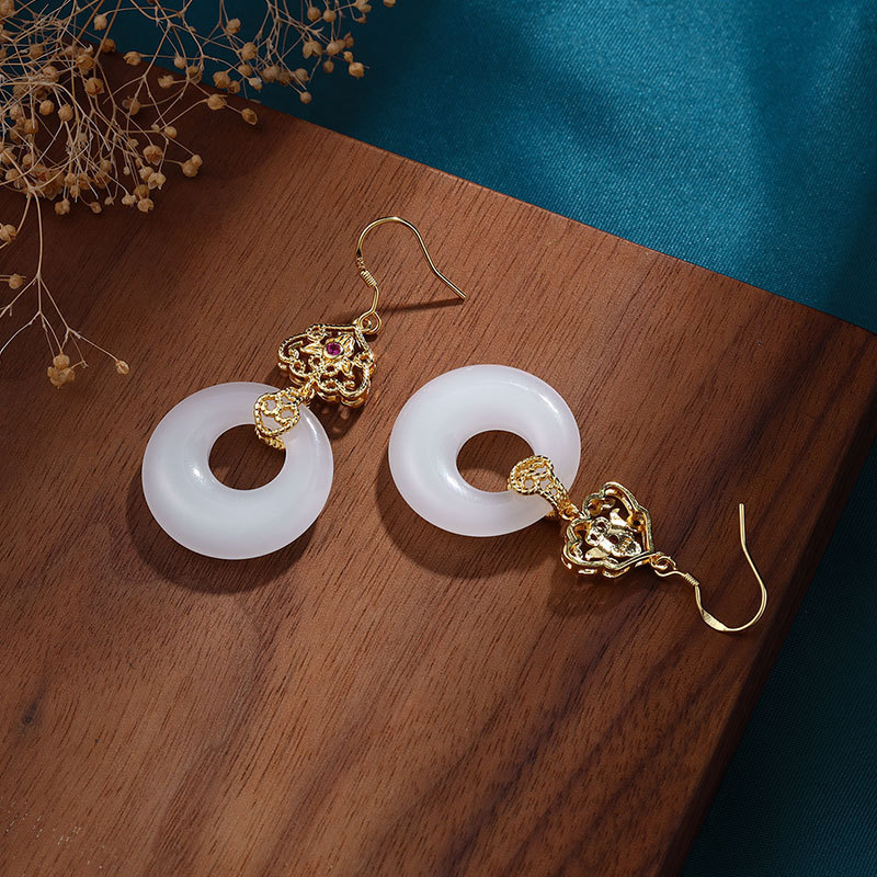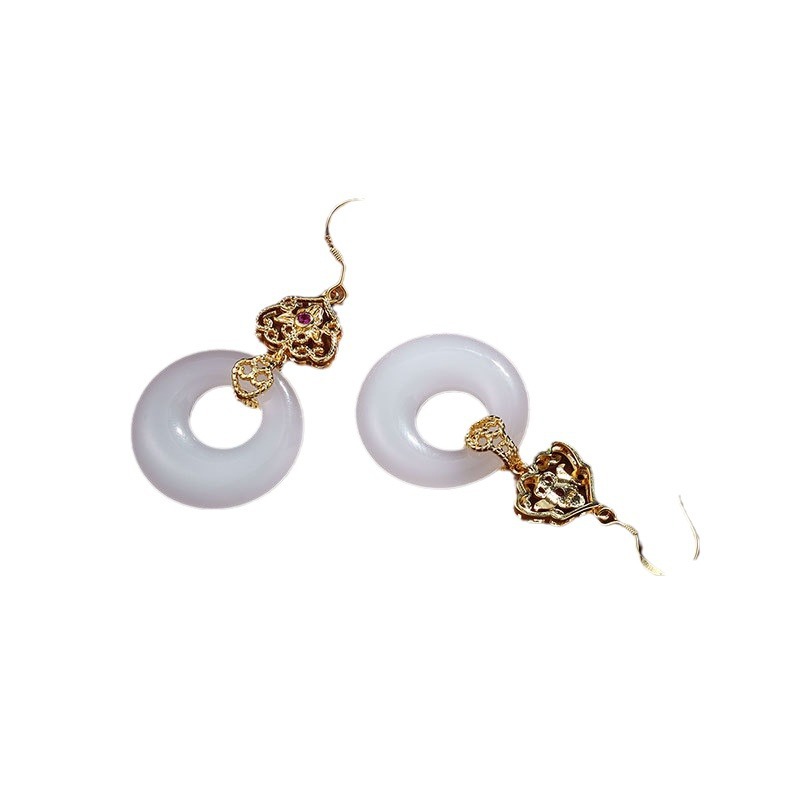 宫廷风复古平安扣气质耳环女典雅古风个性耳钩网红大气耳饰品