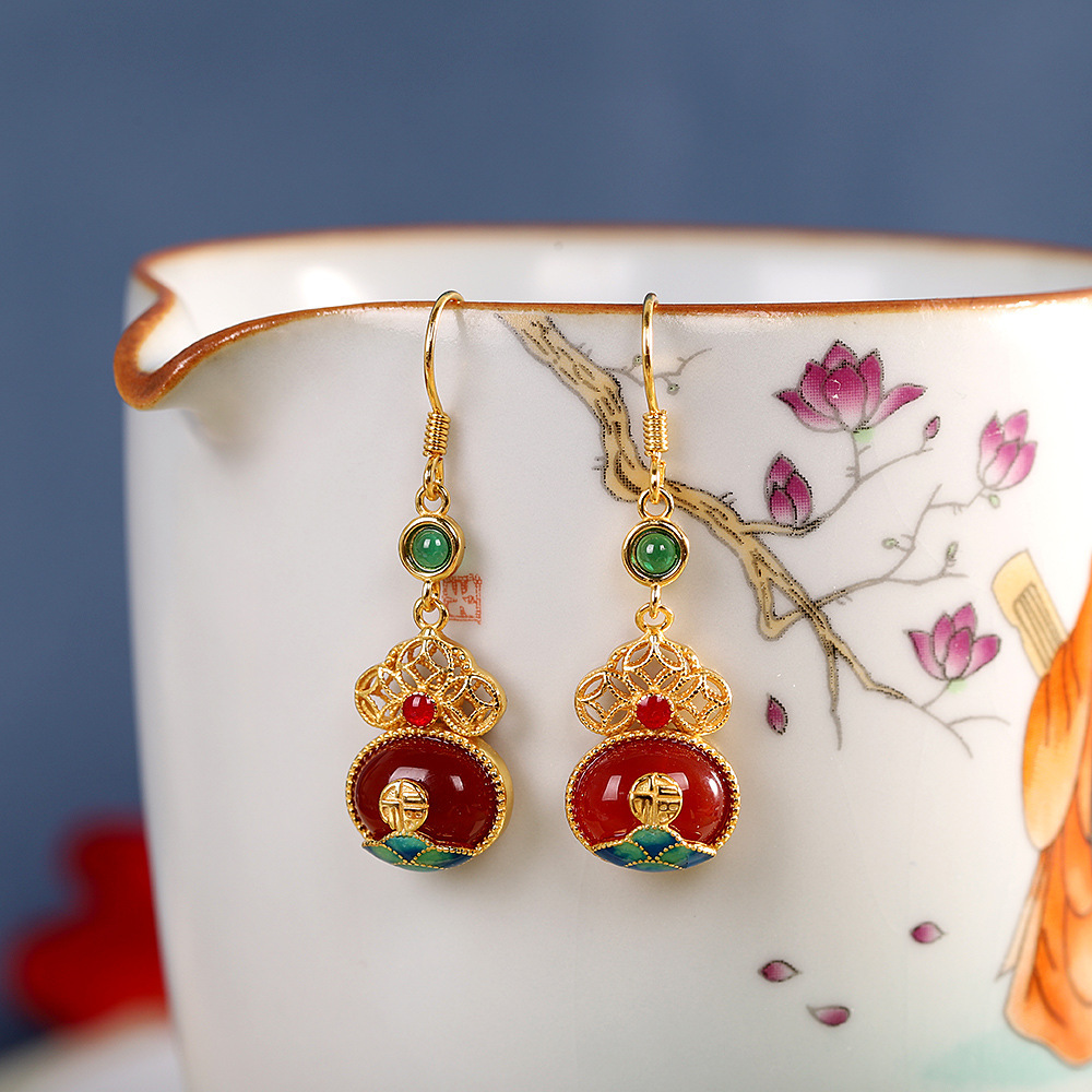 新款S925银镶嵌和田玉珐琅水滴耳坠和田时尚耳线个性时尚耳坠