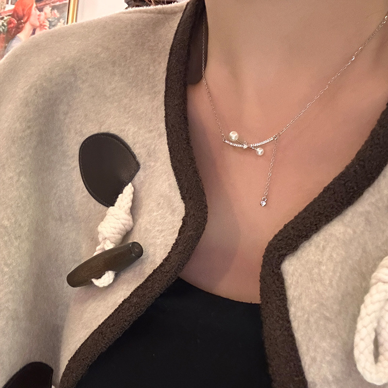 微镶锆石交叉珍珠项链女气质短款锁骨链小众设计感颈链脖子配饰潮