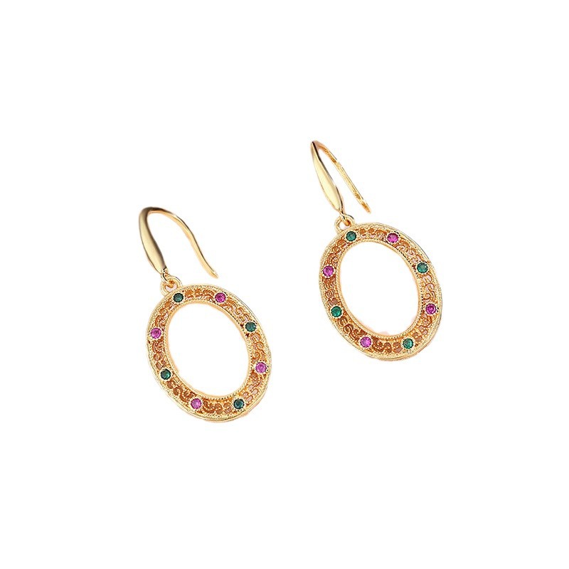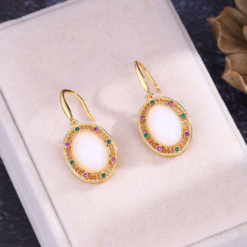 和田玉白玉彩锆镂空耳坠国潮宫廷风珐琅彩工艺和田玉如意花纹吊坠
