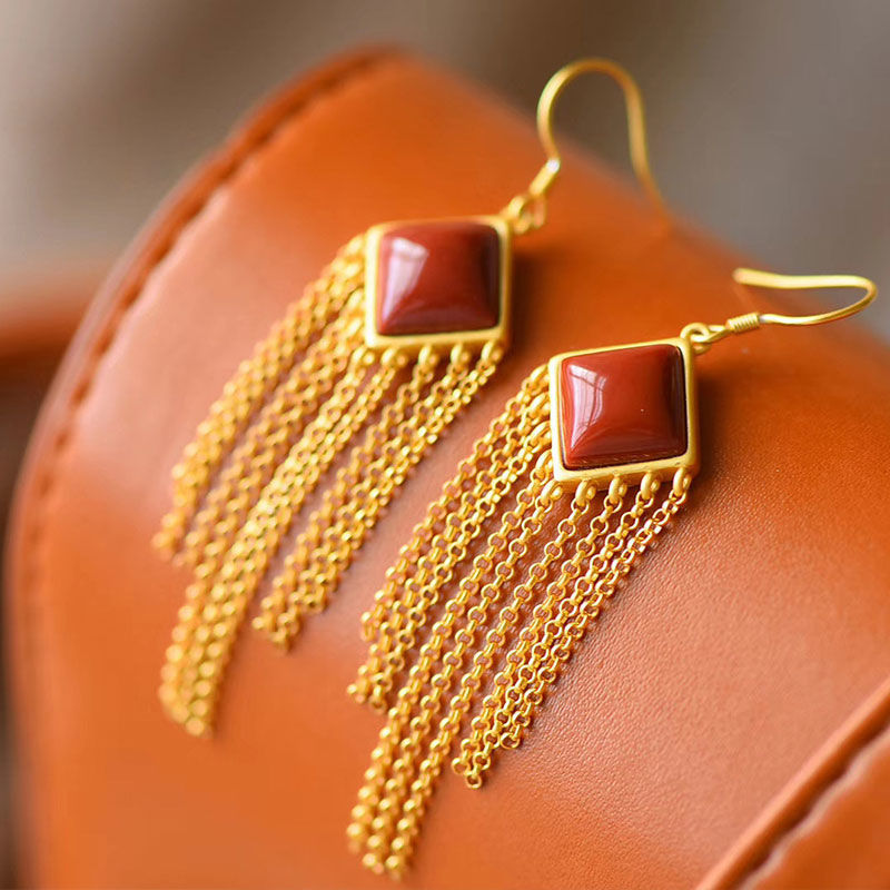经典复古耳环女士925银针流苏控南红耳坠简约保色工艺耳饰