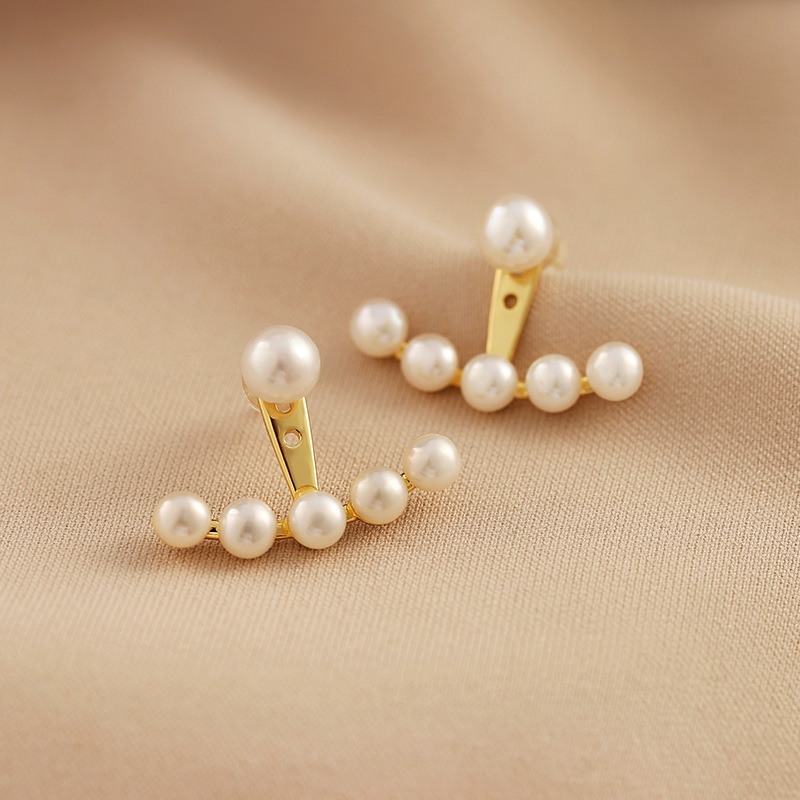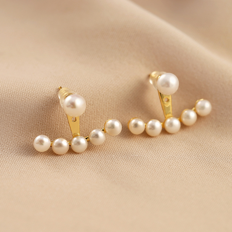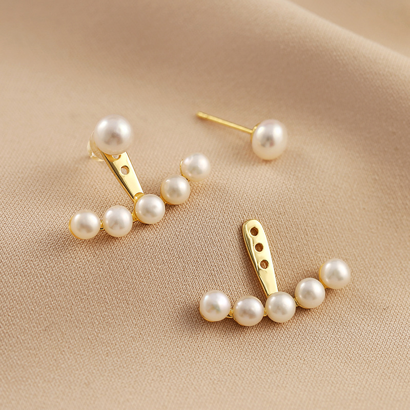 925银针淡水珍珠简约几何耳钉 一款两戴简约耳环网红小巧个性耳饰