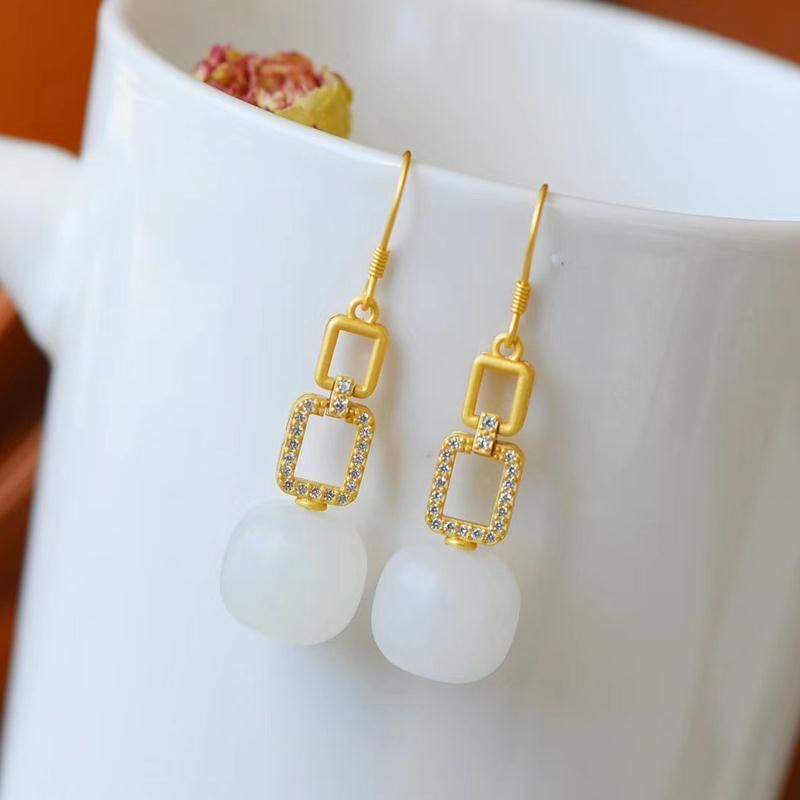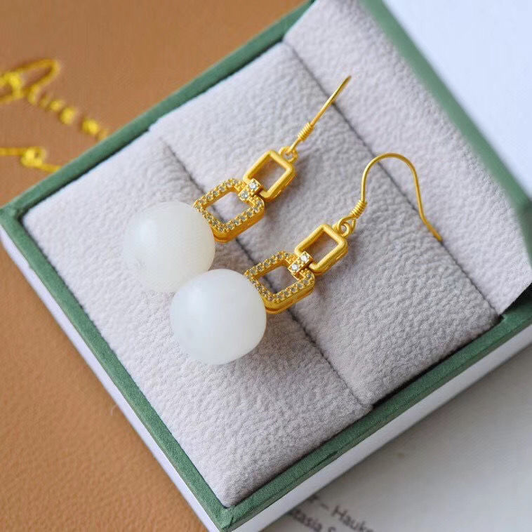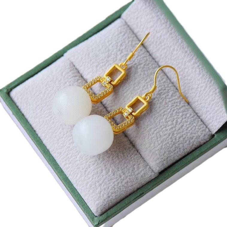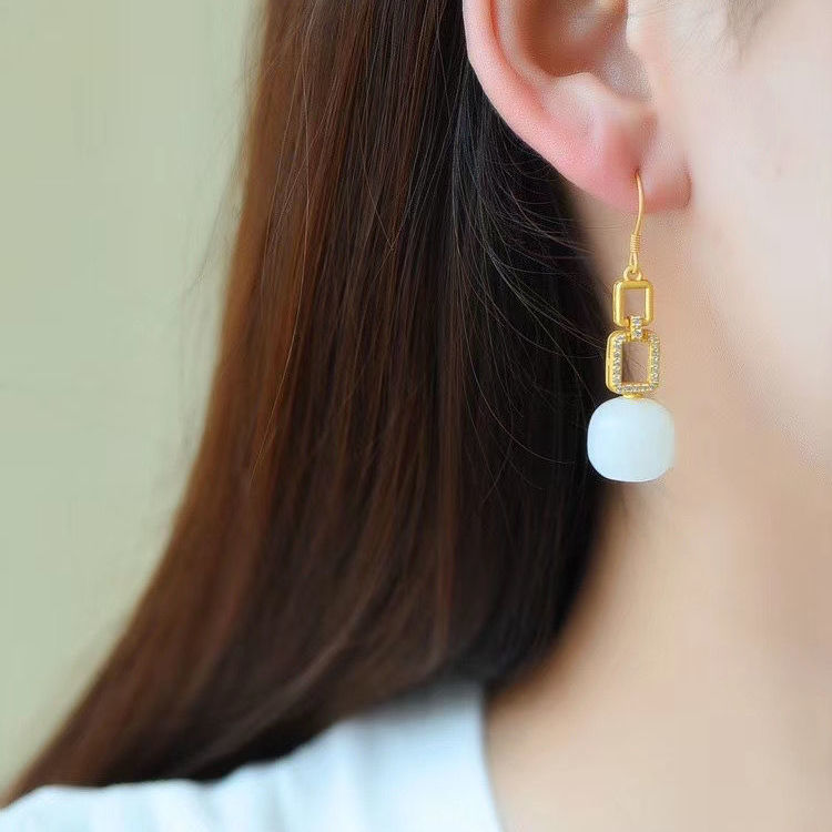 心音小众轻奢设计天然和田个性时尚气质几何镀金镶嵌锆石