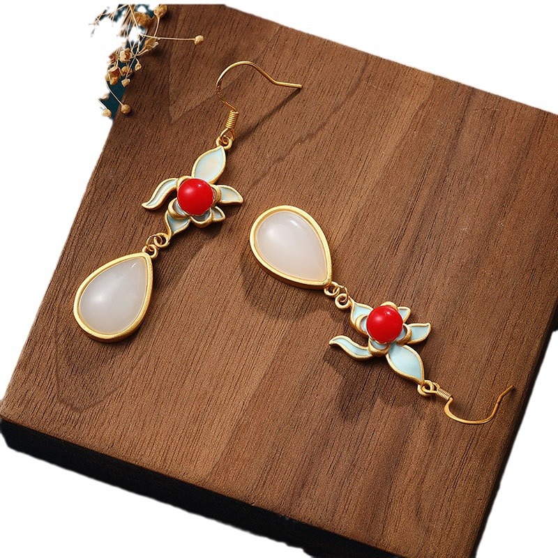 汉服宫廷中式耳坠中国复古风和田耳环宋代阳绿耳钉旗袍流苏耳饰