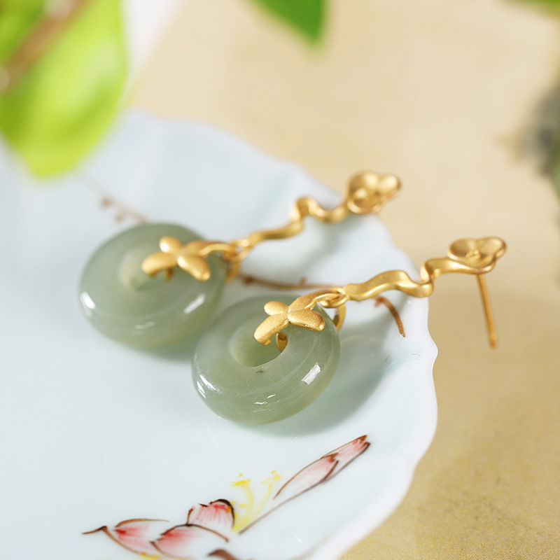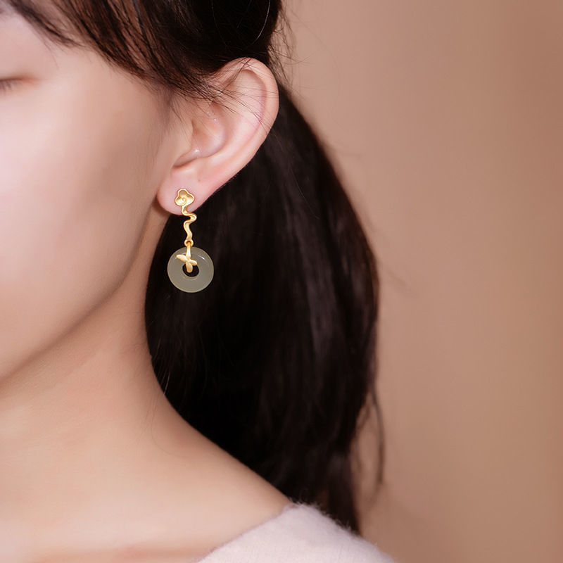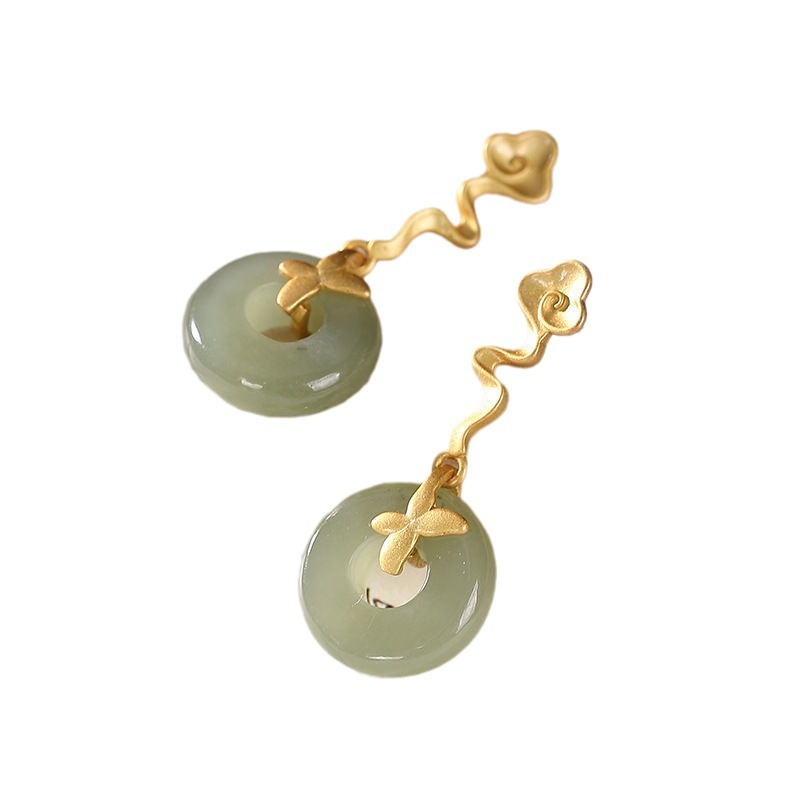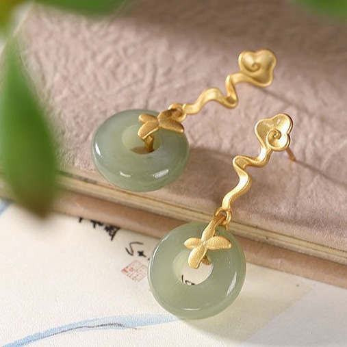 『云深不知处』925纯银平安扣祥云青玉古典风搭配旗袍的耳环饰品