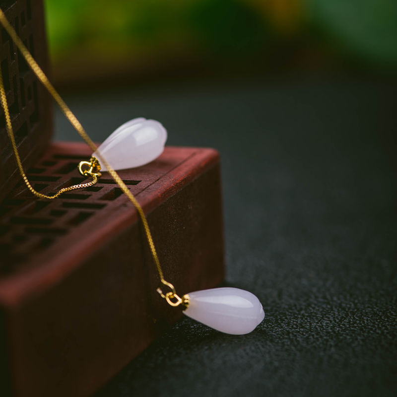 镀s925银镶玉耳线气质白玉兰花耳坠复古民族风铃兰耳环女士款