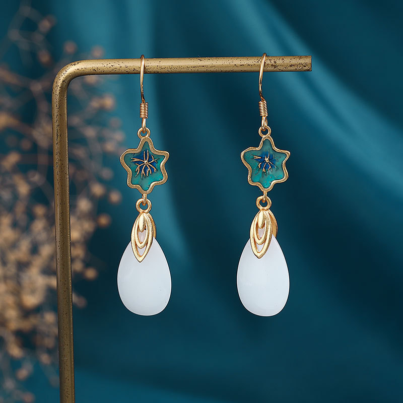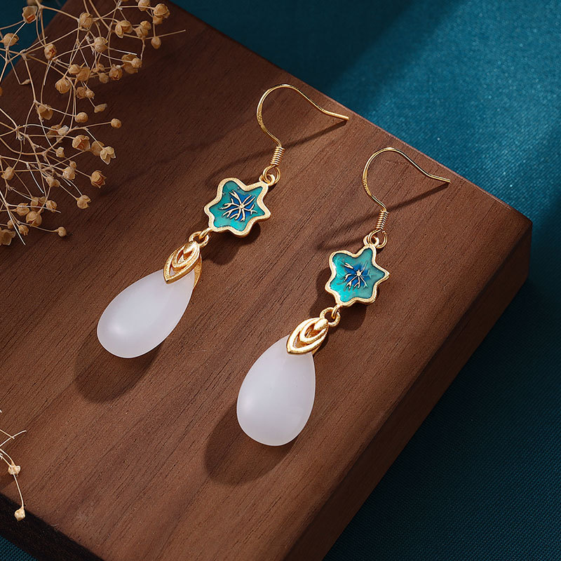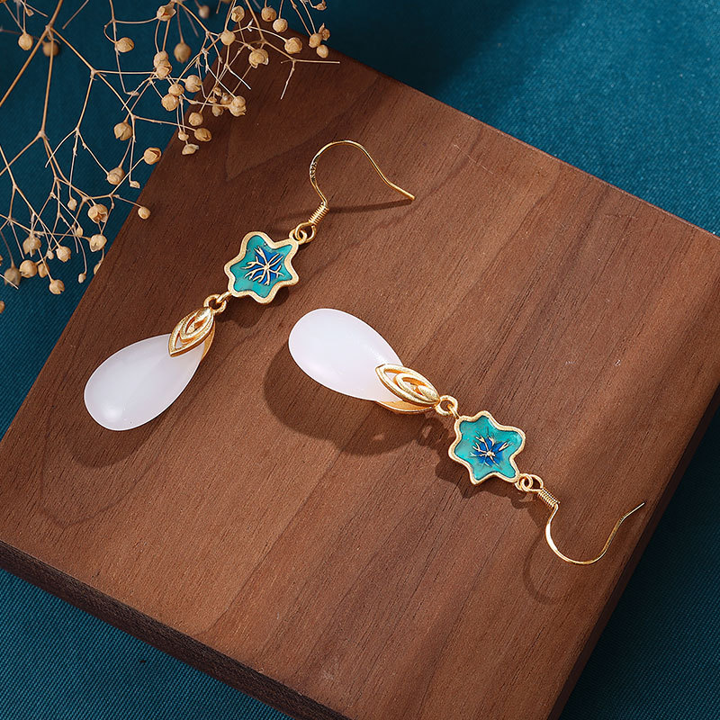景泰蓝白玉耳坠