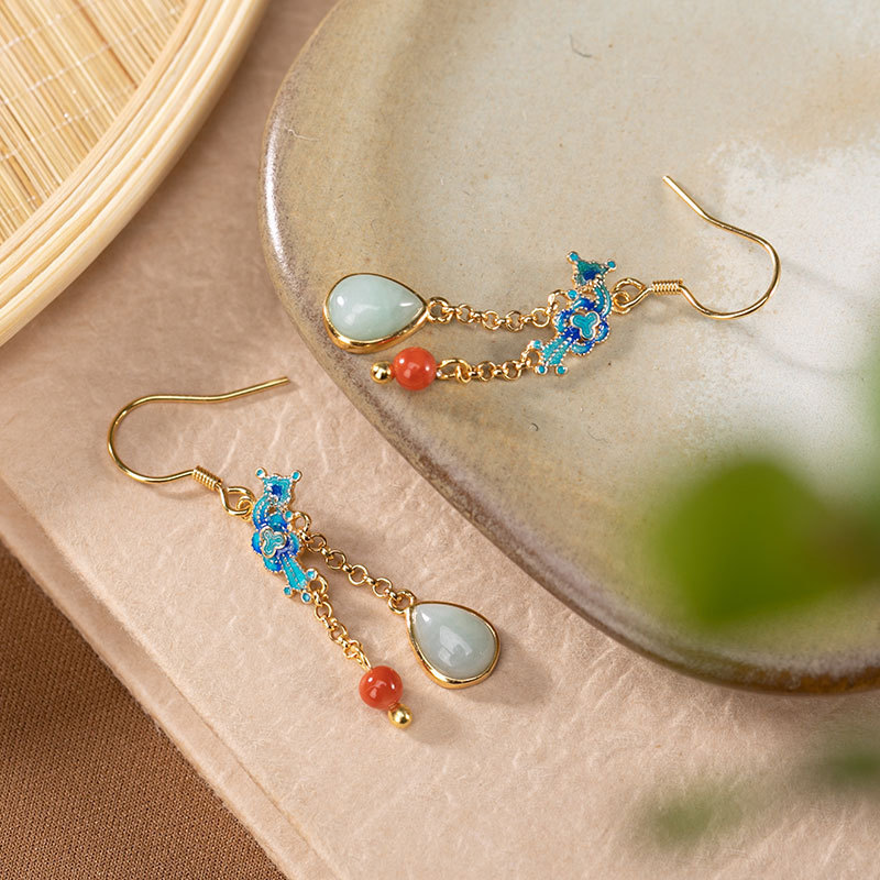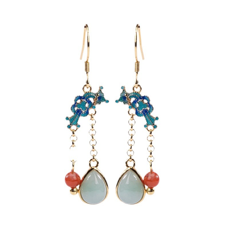 古法传承珐琅工艺仿和田玉耳环女民族风南红耳钉高级感流苏耳饰
