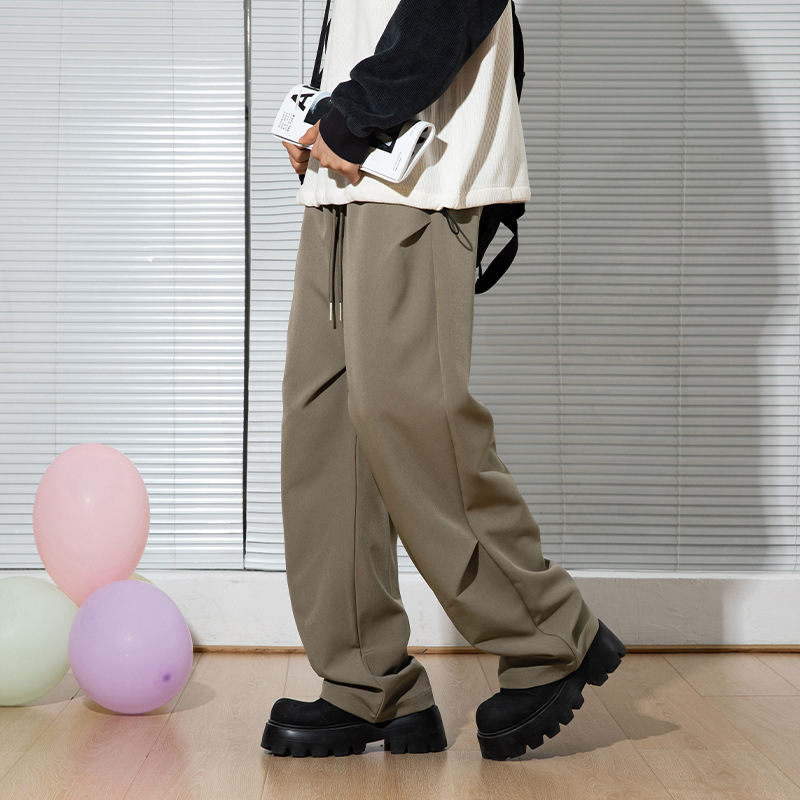 日系打褶设计立体休闲西裤男秋季新款弯刀裤子纯色宽松基础款长裤