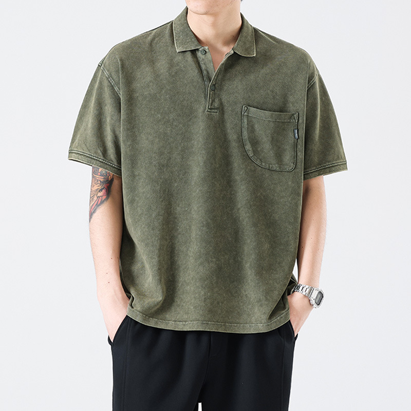 美式复古polo衫男士夏季潮牌翻领短袖t恤男休闲宽松纯棉工装体恤