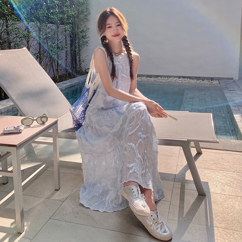 仙气天丝提花吊带挂脖连衣裙新中式子女夏新款夏装搭配休闲