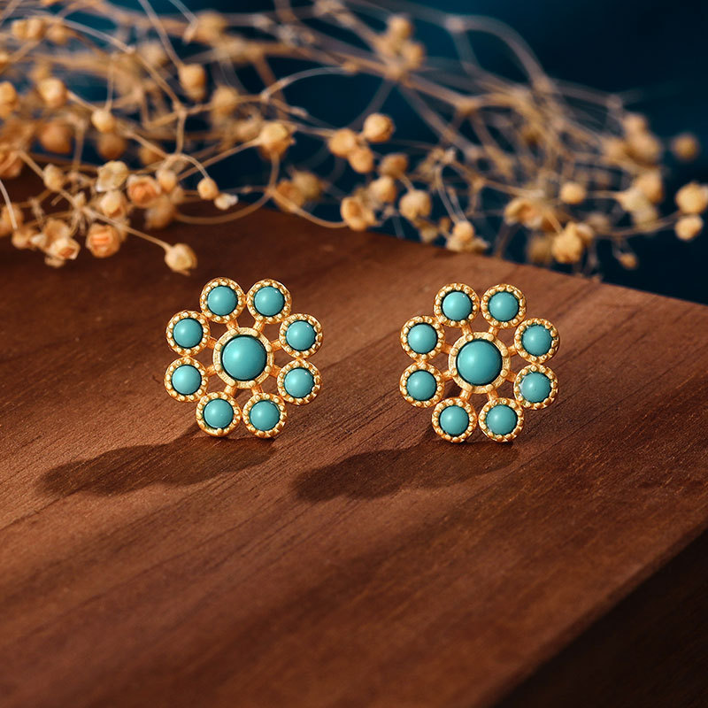 宫廷风设计复古装旗袍耳饰925银针素面绿松石女耳钉汉服配饰耳坠