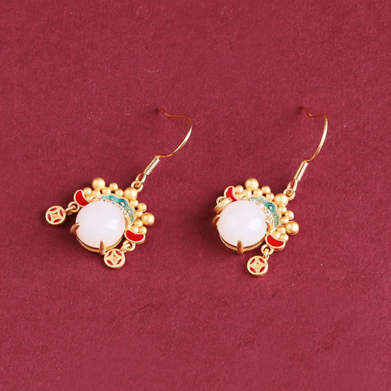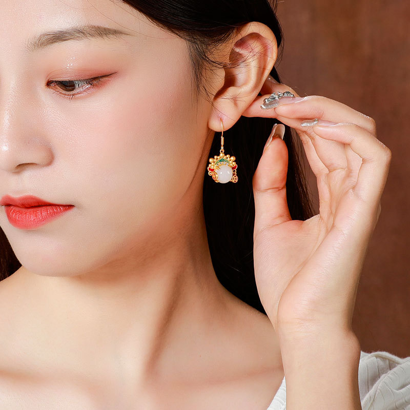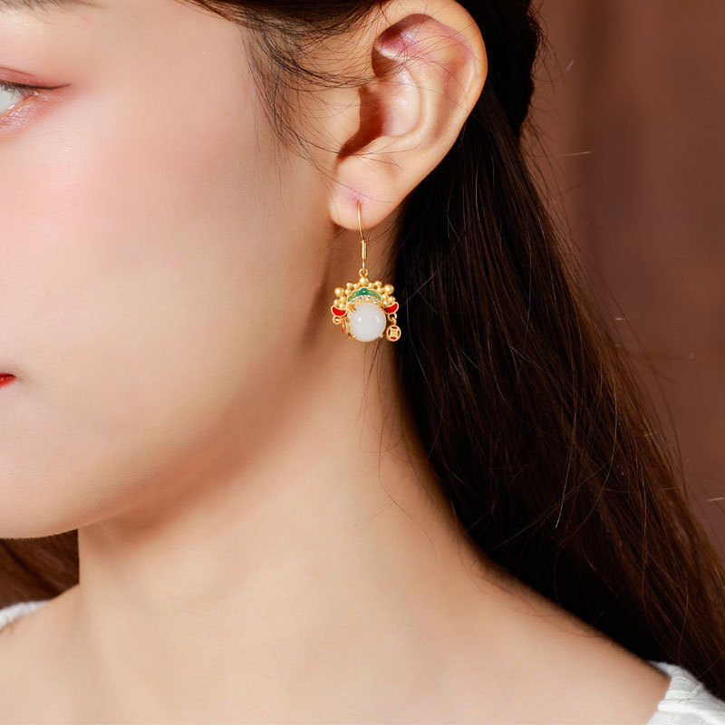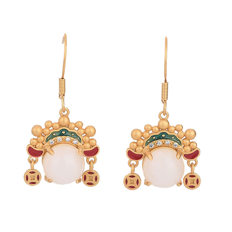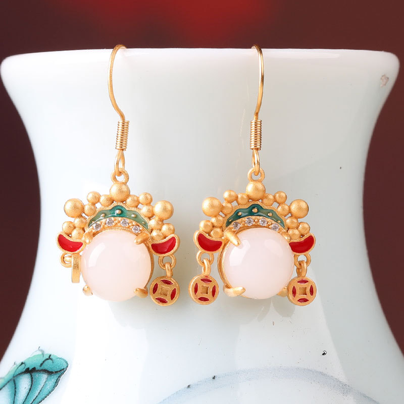 春夏季国潮耳饰配饰古法镀金玉质耳坠中国风戏剧刀马旦脸谱耳环女