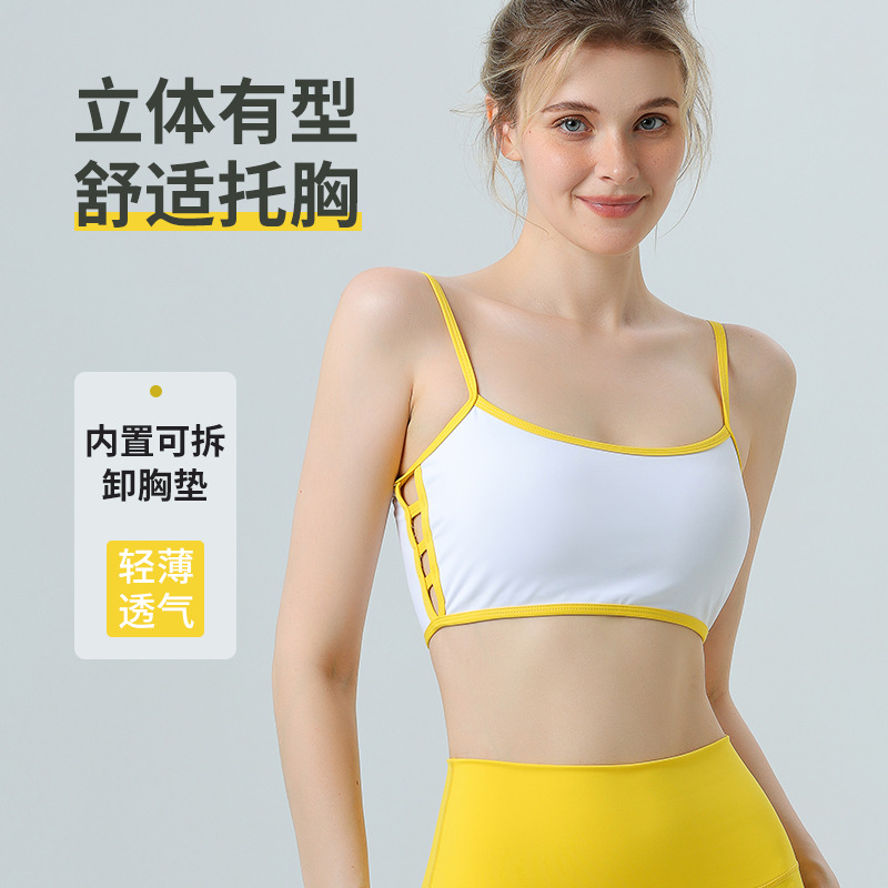 欧美跨境侧镂空撞色边裸感内衣运动健身文胸聚拢带胸垫瑜伽服套装