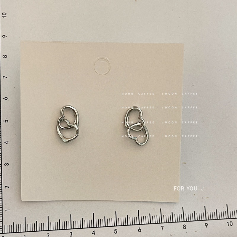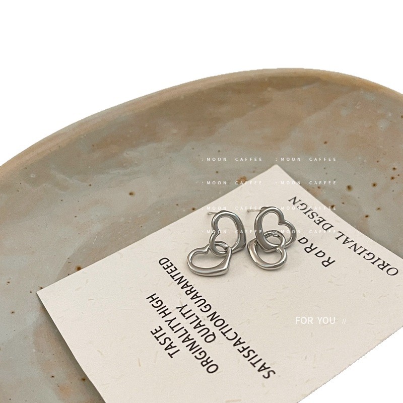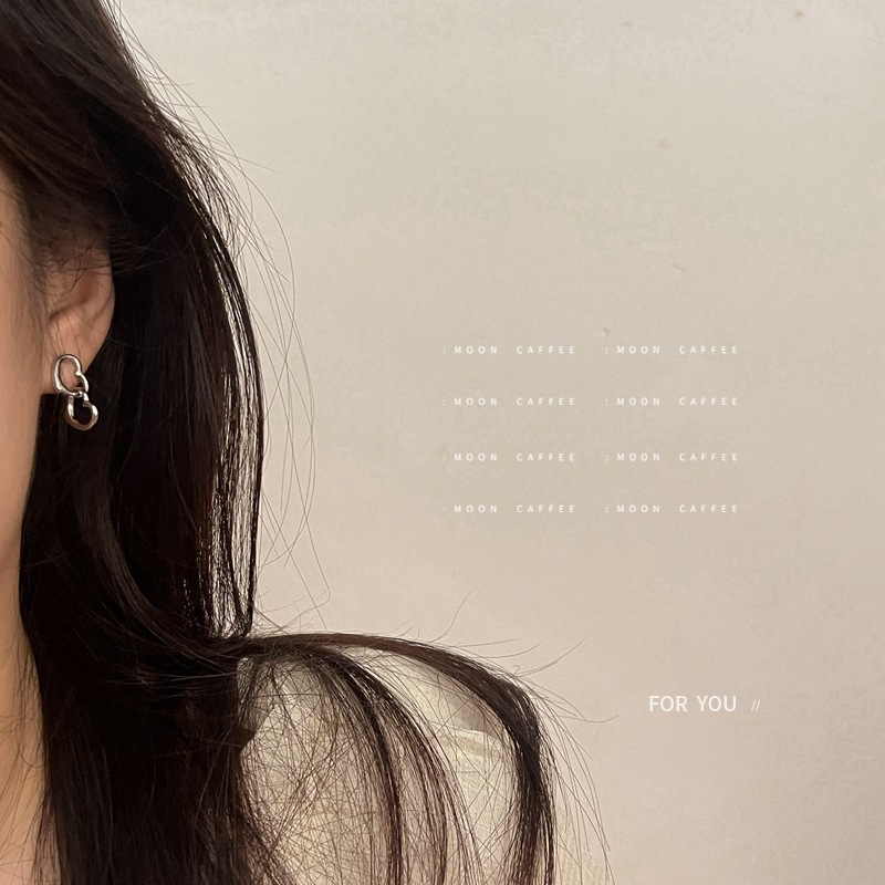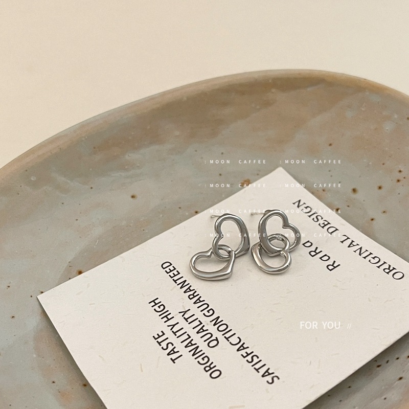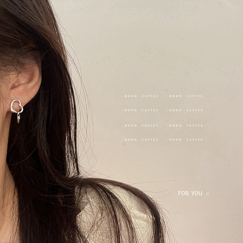925银针爱心拼接流苏精致耳环小巧冷淡风百搭日常出街简约耳钉女