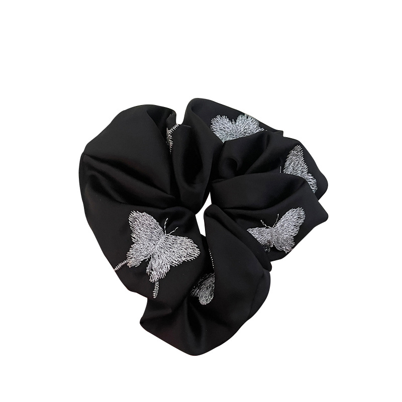 高级感头绳高端大肠发圈气质黑色缎面蝴蝶刺绣扎马尾皮筋复古百搭