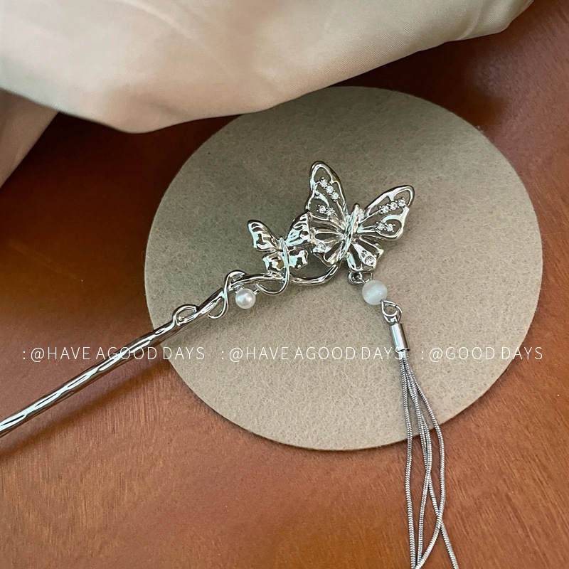 清冷感镂空蝴蝶发簪盘发复古头饰气质小众设计感高级轻奢发饰简约
