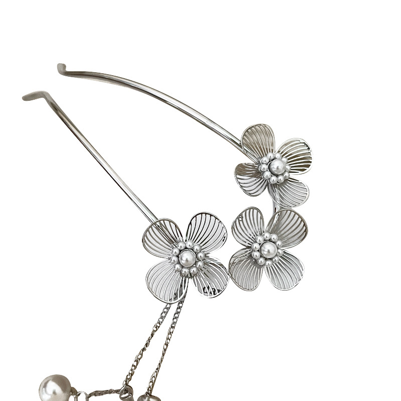 古风簪子珍珠镂空花朵发饰多层高级感流苏U形甜美森系丸子头发饰