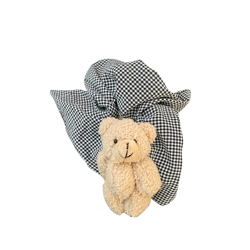 秋冬新款设计感百搭黑白格子卡通玩偶发圈大肠方巾圈发绳发饰
