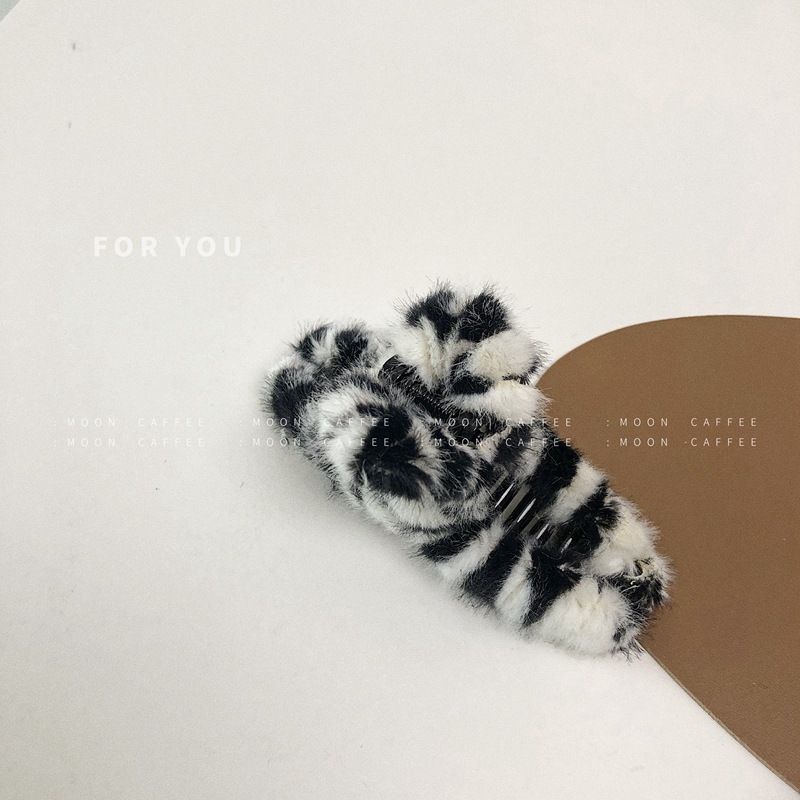 斑马纹毛毛抓夹ins超火的发饰品潮个性百搭发卡发夹秋冬新款