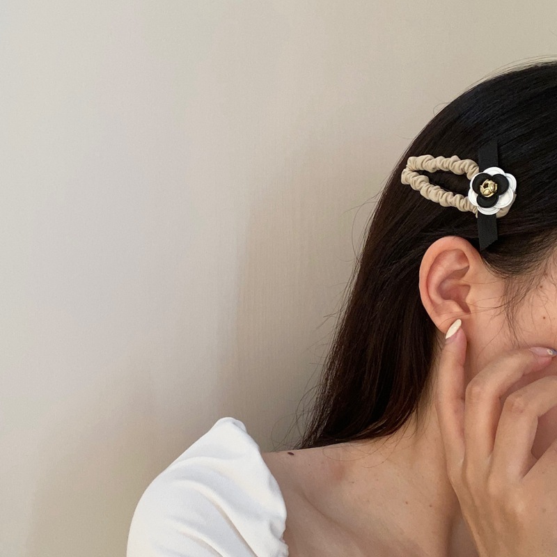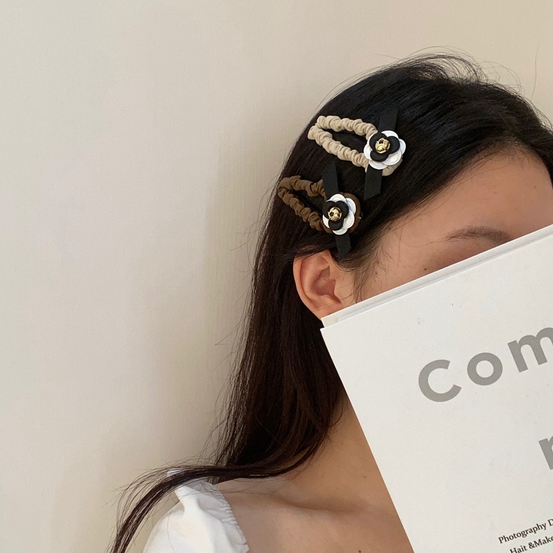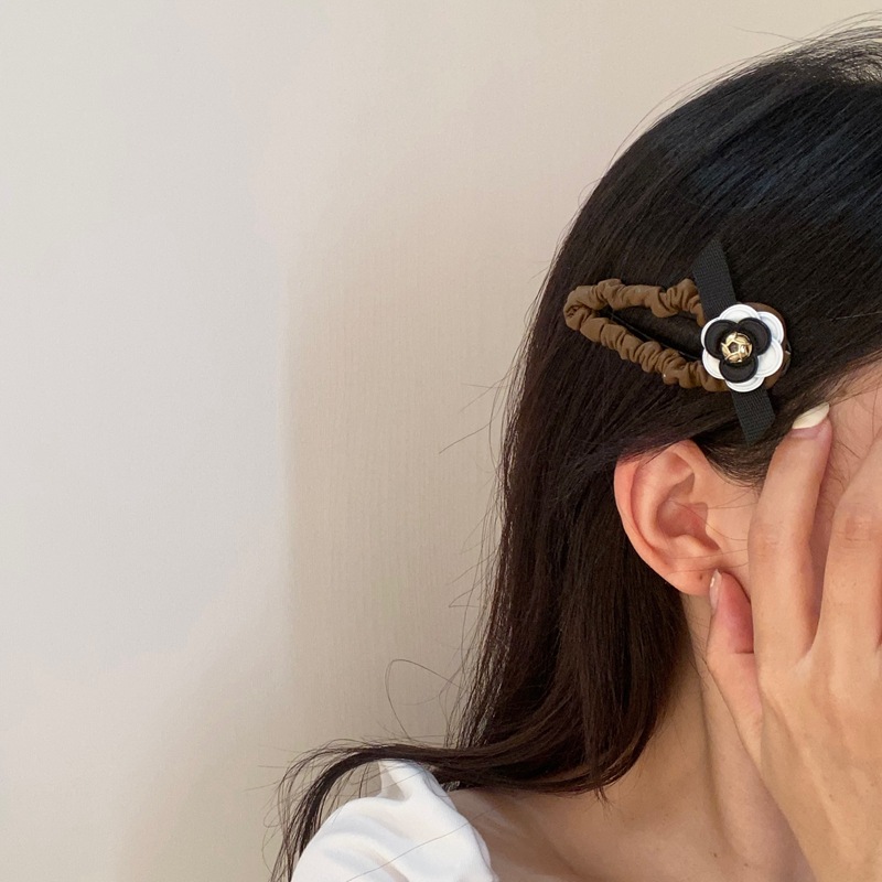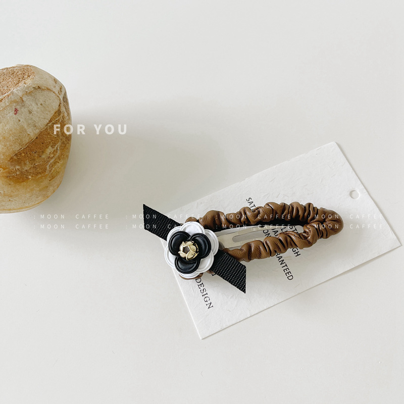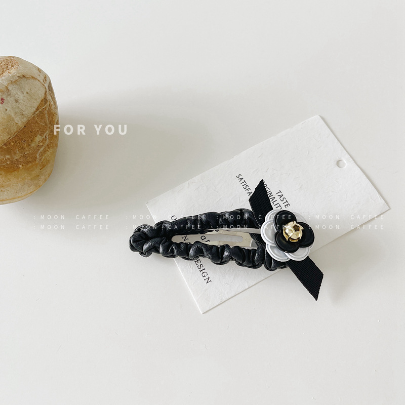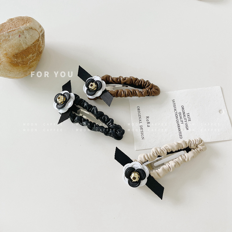 韩国东大门复古小香风PU皮烤漆花朵蝴蝶结鸭边夹刘海夹新
