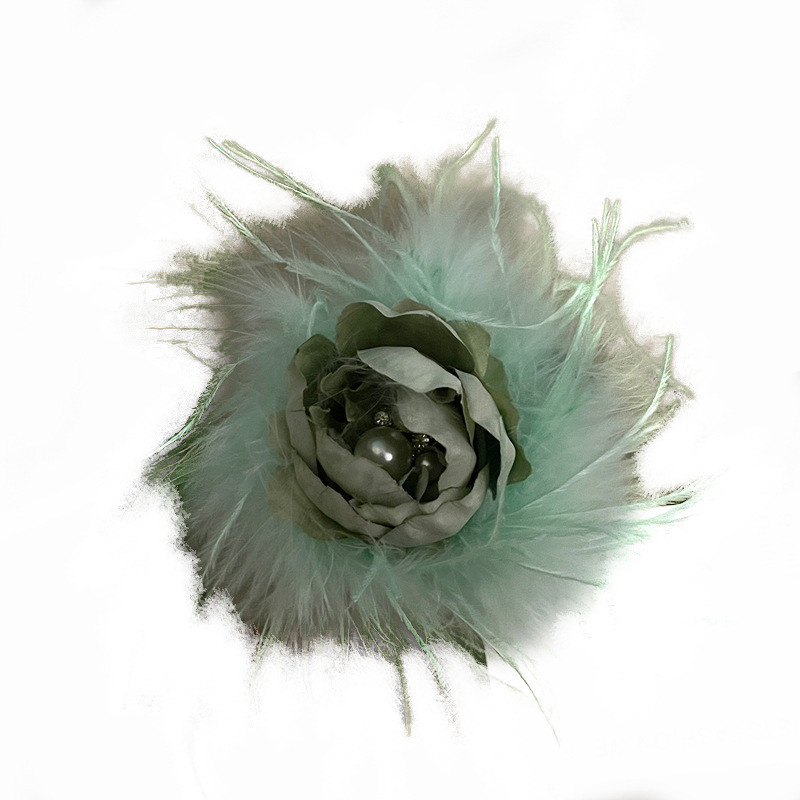 春季新款甜气质小众纯欲仙盘发大号鲨鱼夹后脑勺美鸵鸟毛花朵发夹