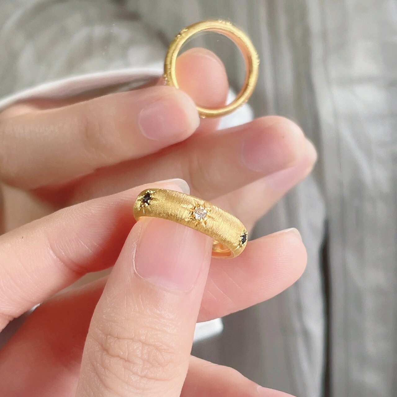 S925纯银镀18K金复古宫廷拉丝工艺星芒开口宝石戒指小众设计指环