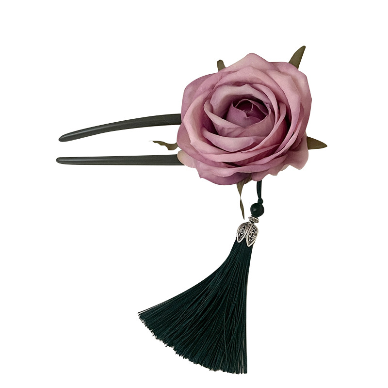 古风簪子山茶花流苏发饰多层立体渐变纱花朵U形甜美森系丸头发钗