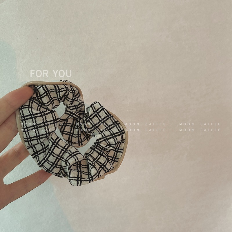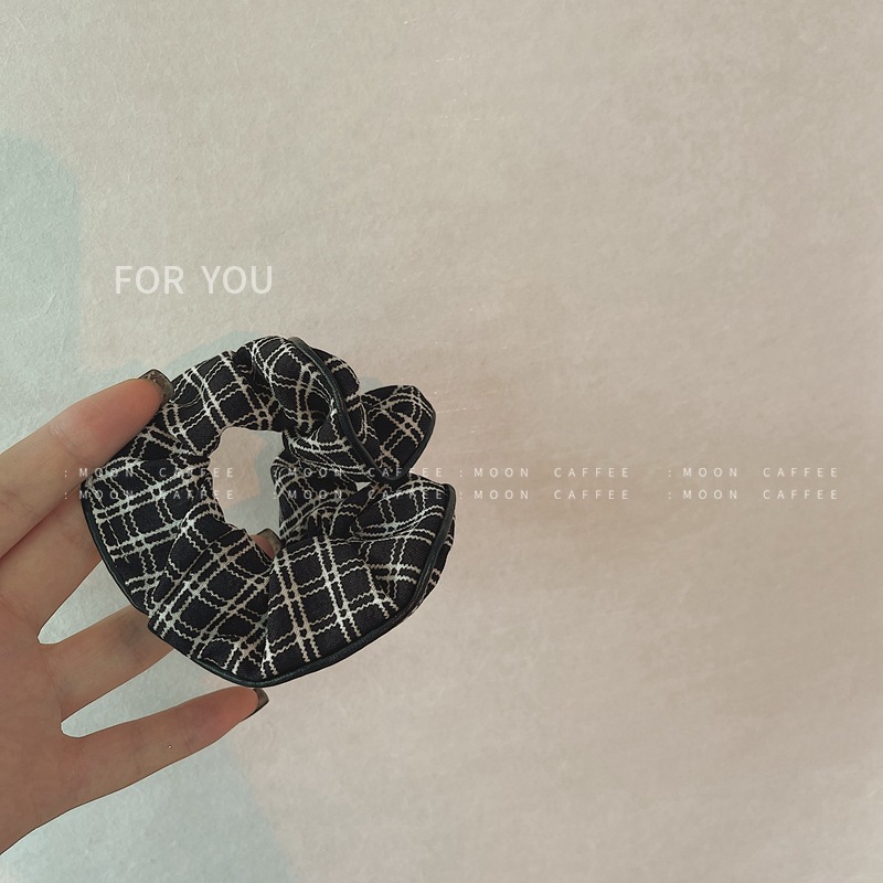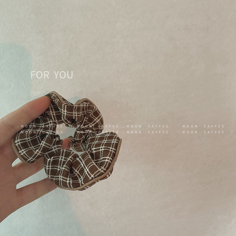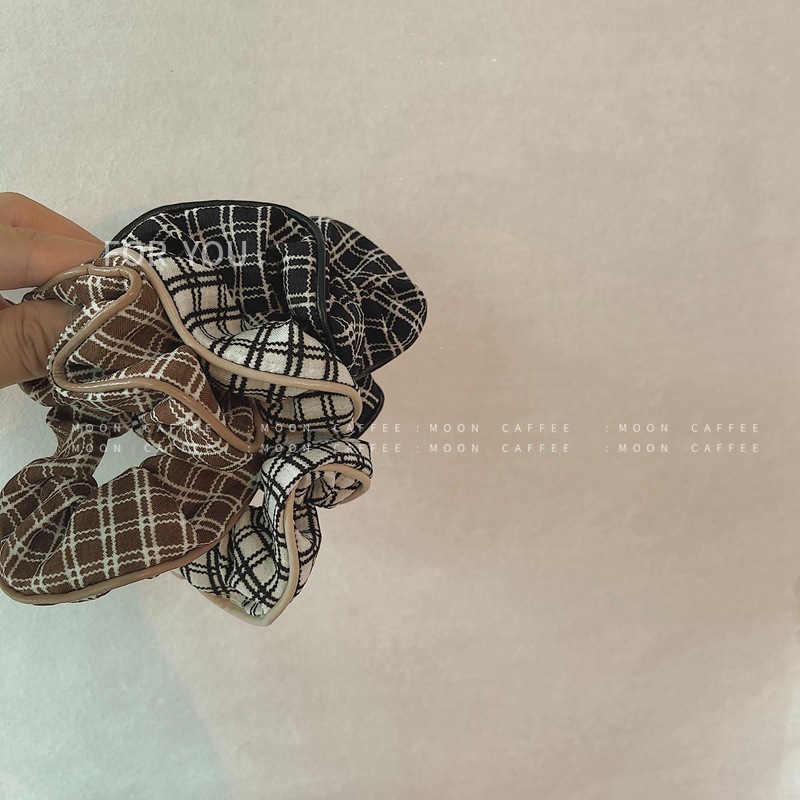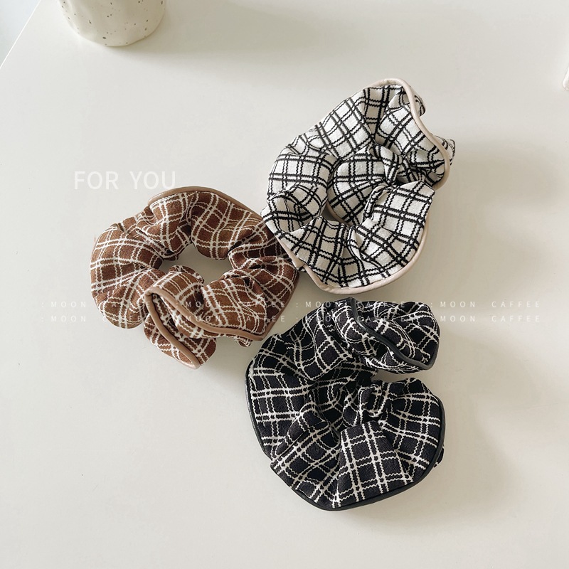 韩国新款格子布皮质包边品质发圈丸子头大肠复古发绳ins百搭