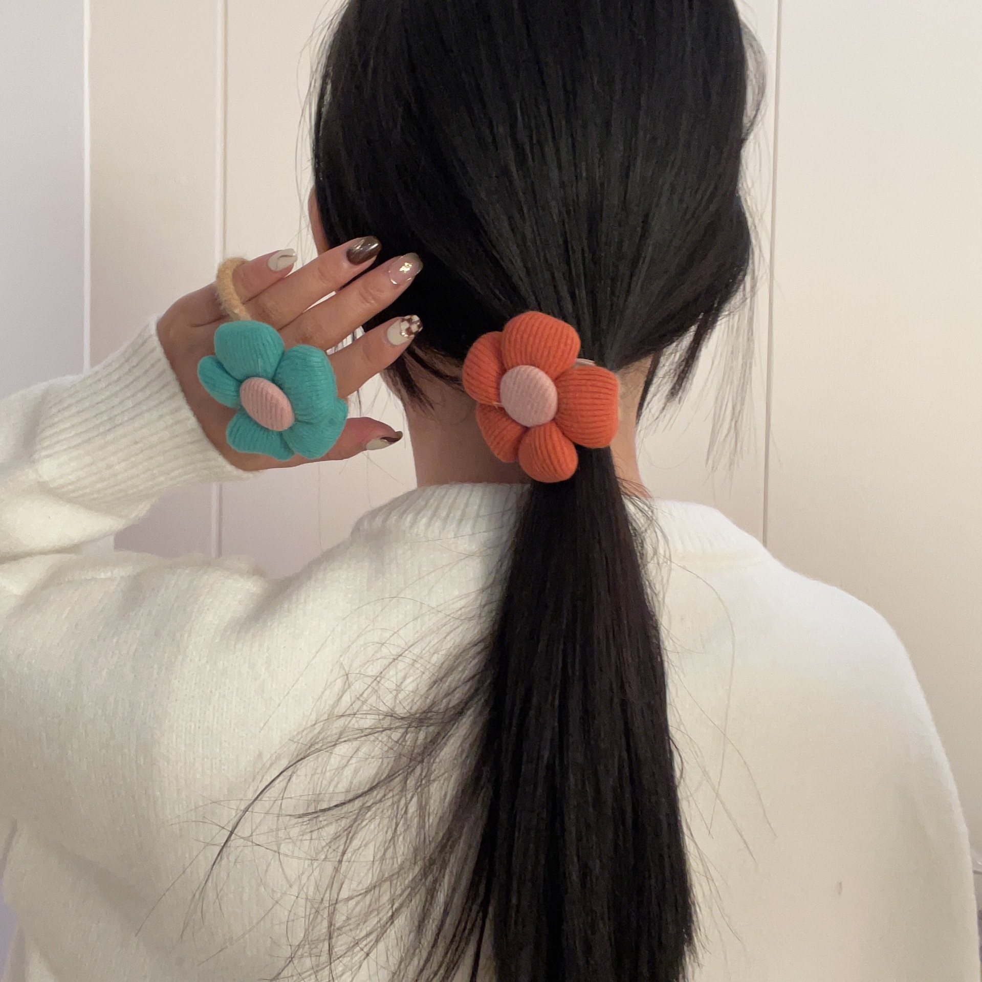 糖果色泫雅风撞色花朵花瓣复古森系超仙发圈发绳女ins少女感头饰
