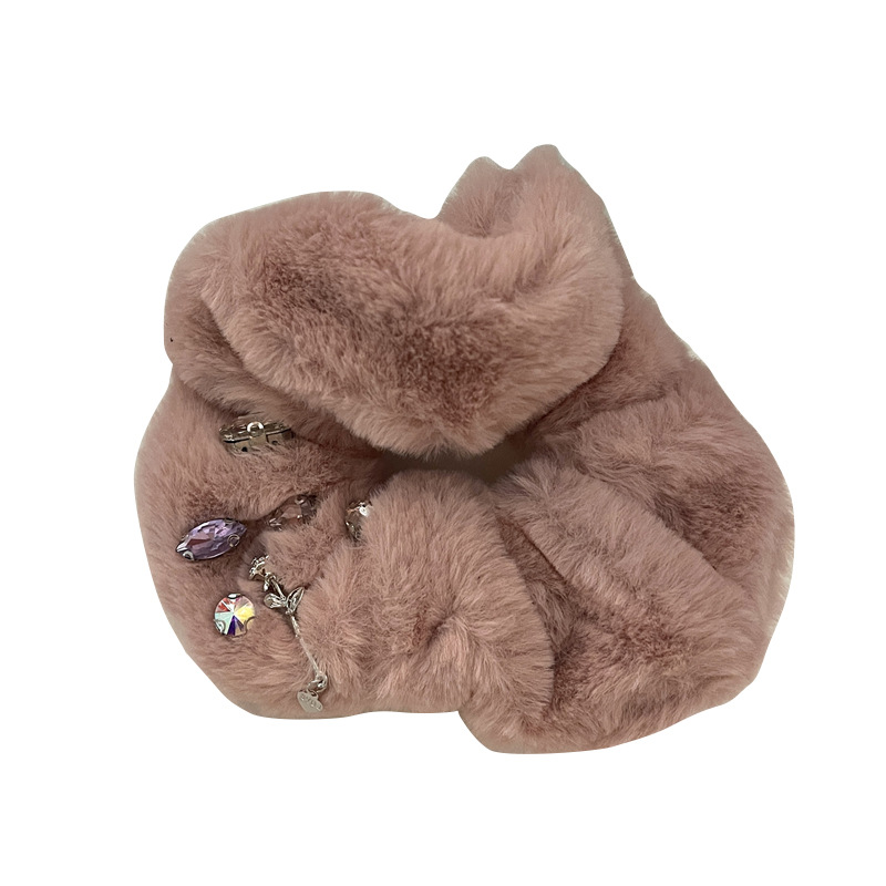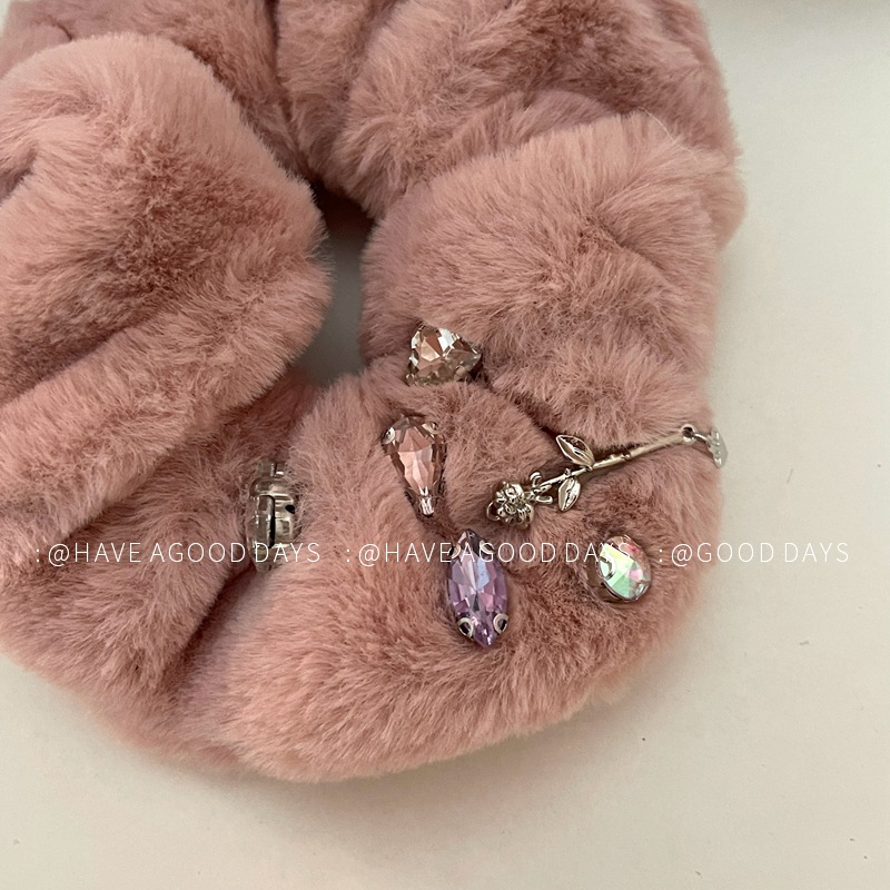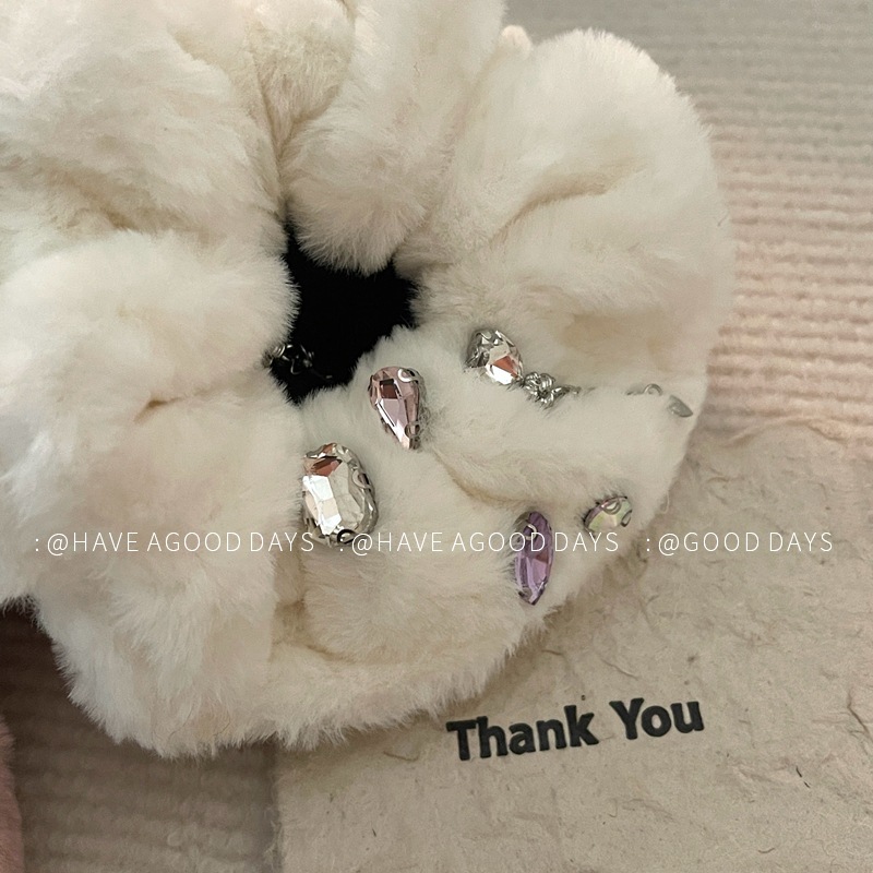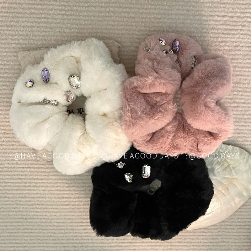 毛绒彩钻大肠发圈甜美冬季新款小众设计感高级感马尾发饰头饰气质