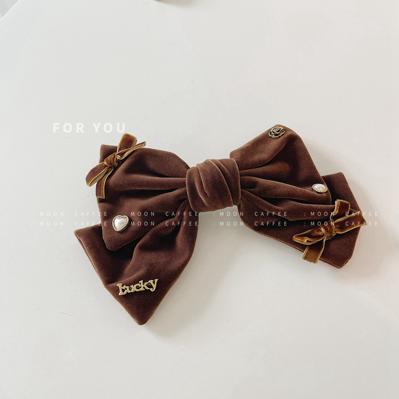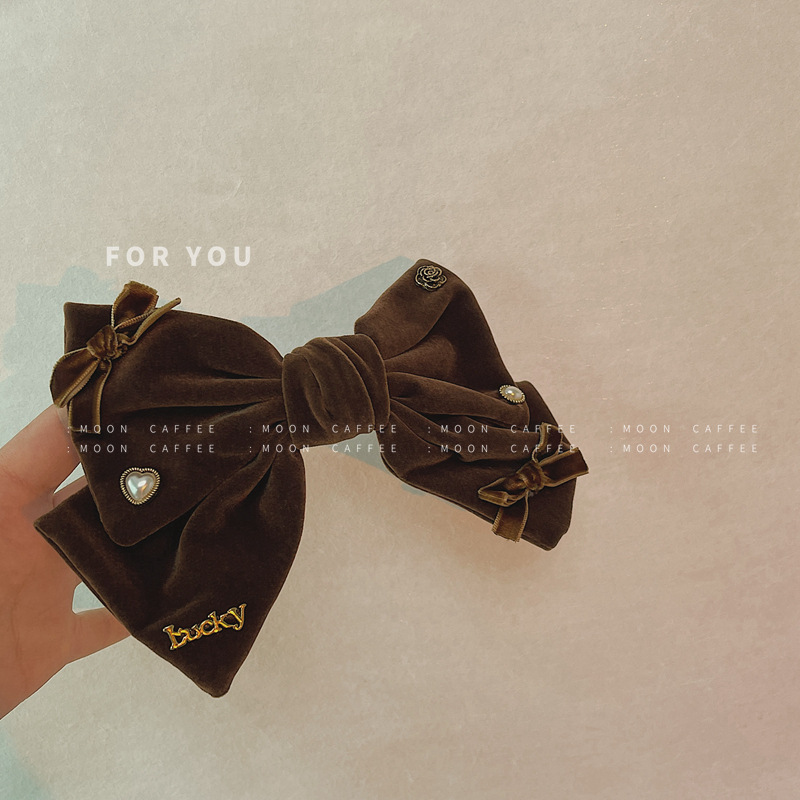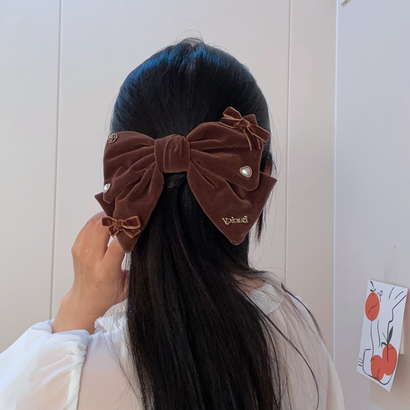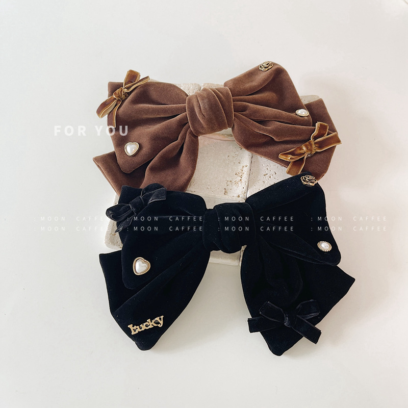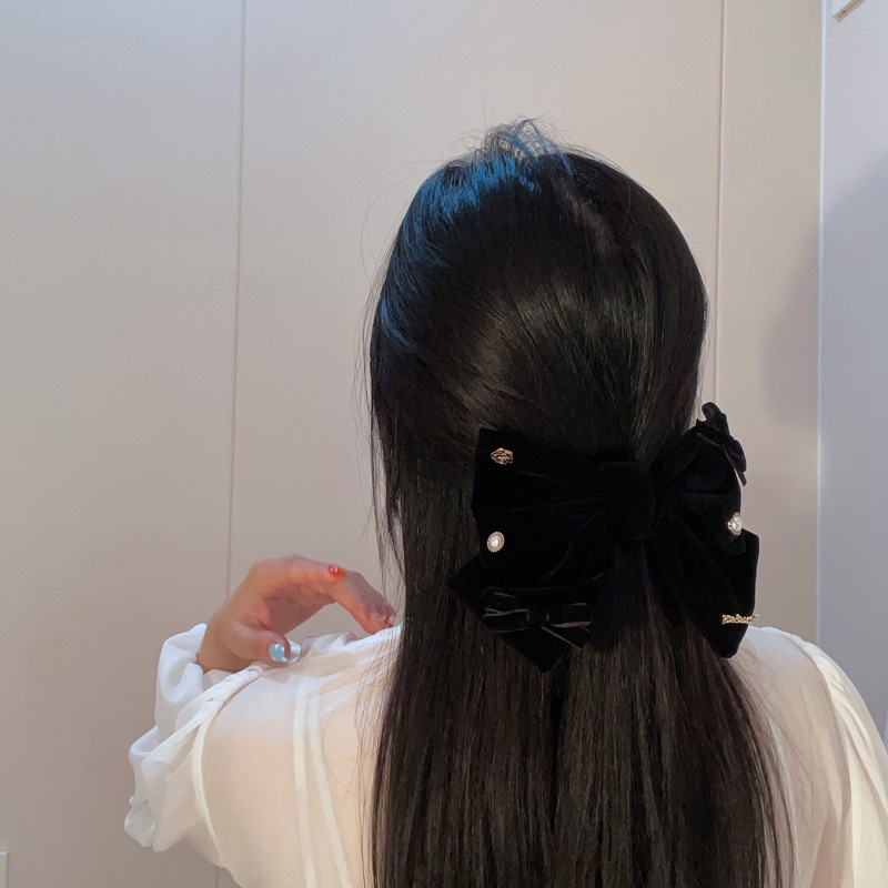 法式设计感复古珍珠天鹅绒韩国新款发夹顶夹时尚气质弹簧夹女