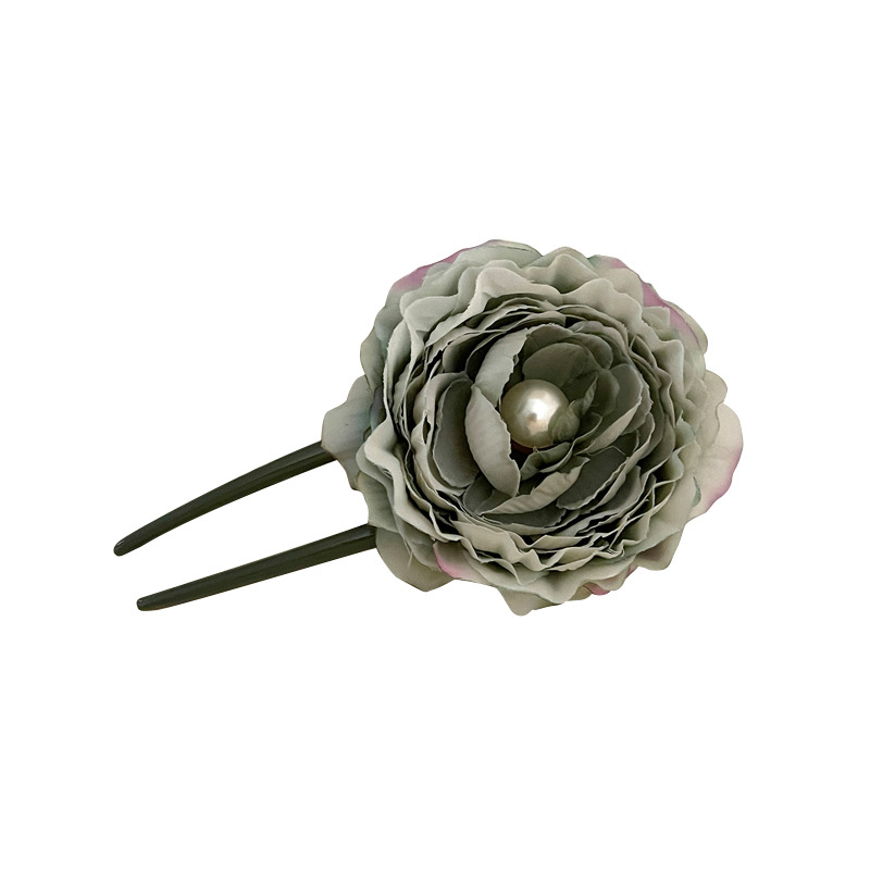 古风簪子山茶花珍珠发饰多层立体渐变纱花朵U形甜美森系丸头发钗