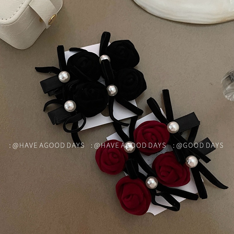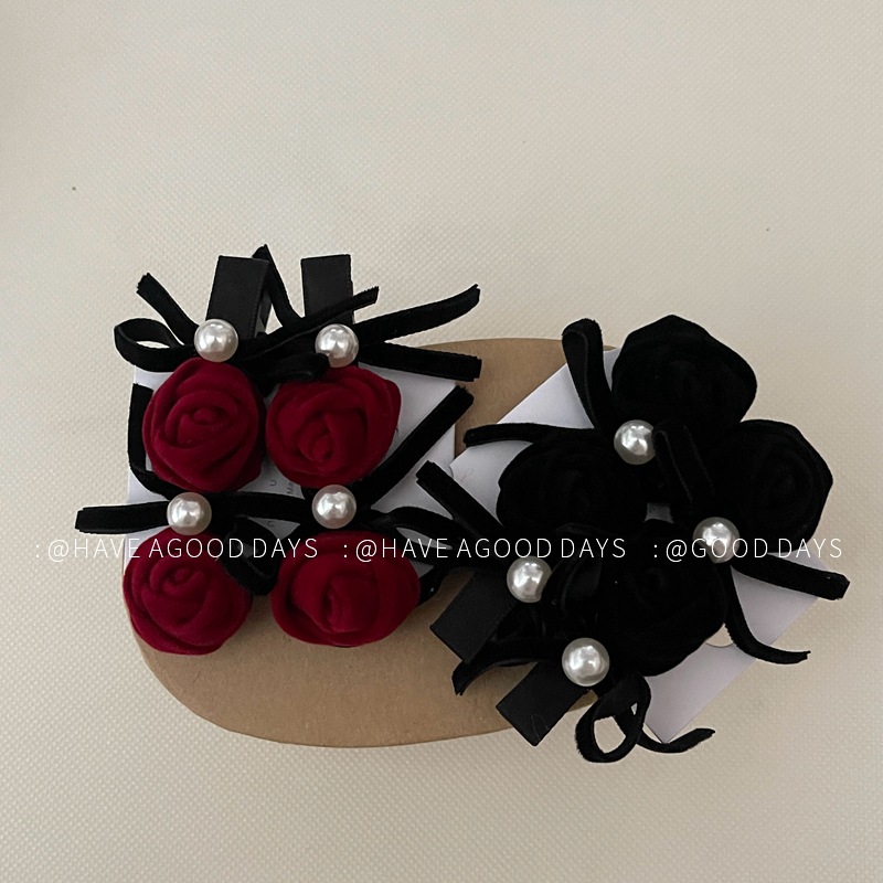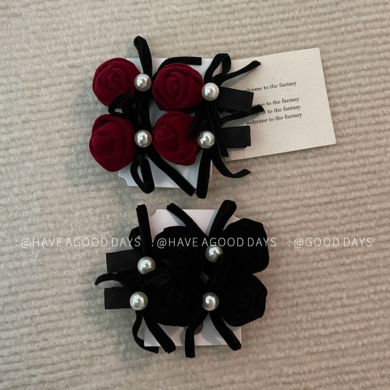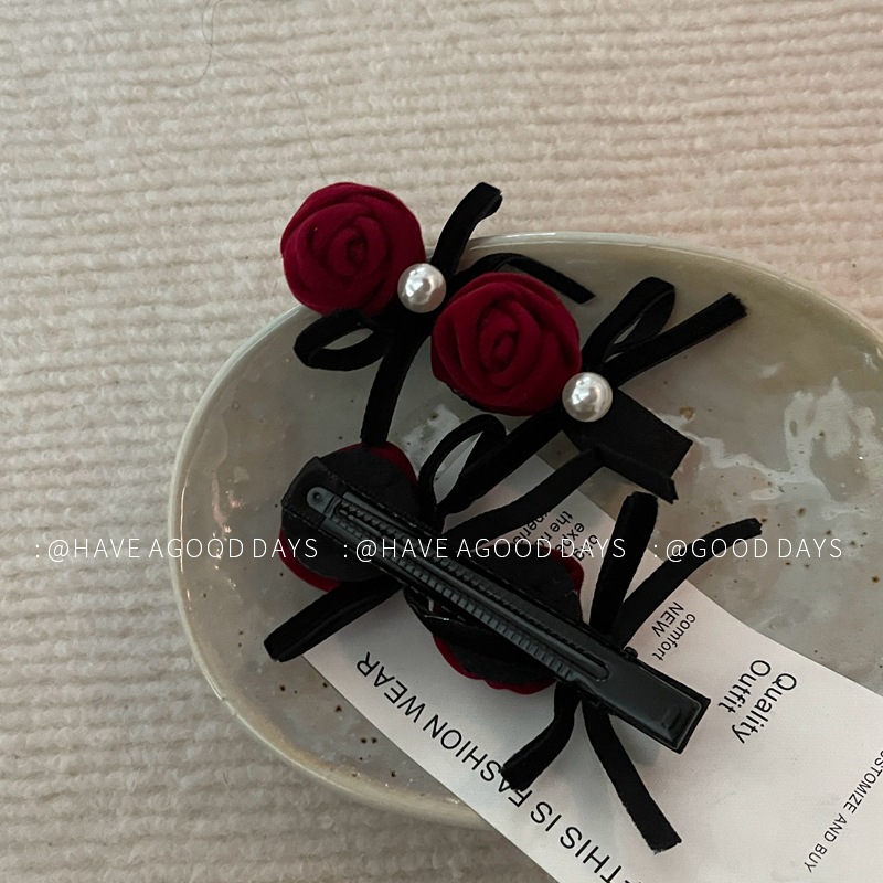 甜美玫瑰丝绒珍珠发夹蝴蝶结边夹头饰小众设计感个性时尚韩版发饰
