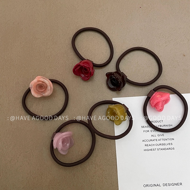 个性玫瑰花头绳发饰甜美夏日新款发圈小众设计感气质简约百搭清新