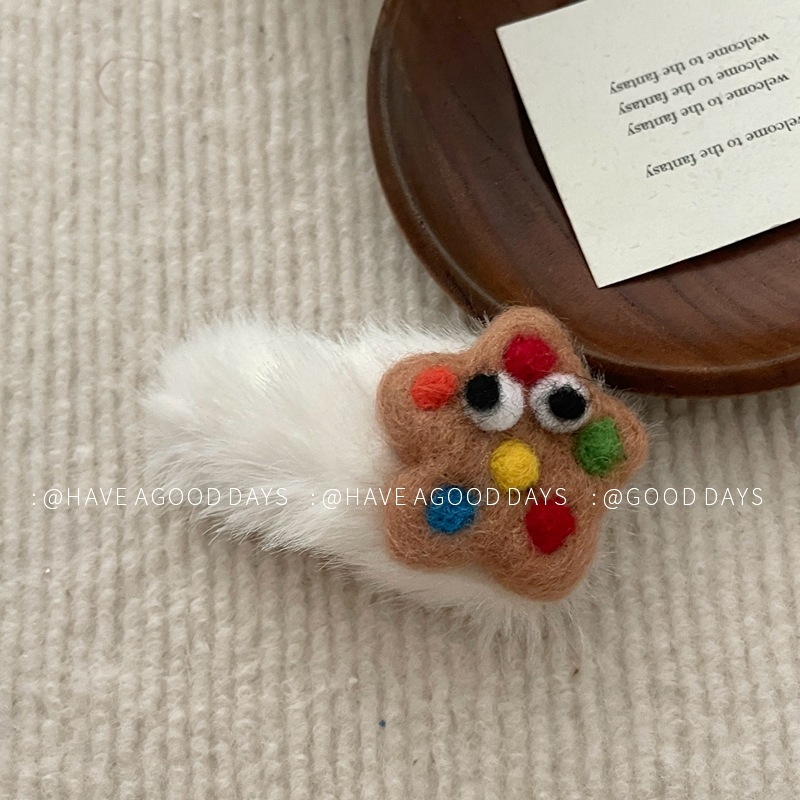 秋冬新款毛绒彩色花朵发夹气质BB夹小众设计头饰发饰甜美可爱少女