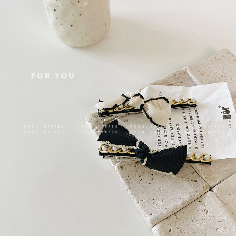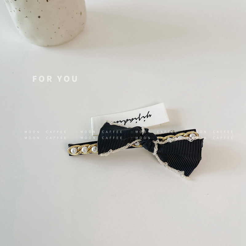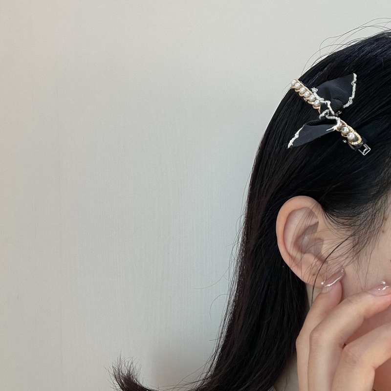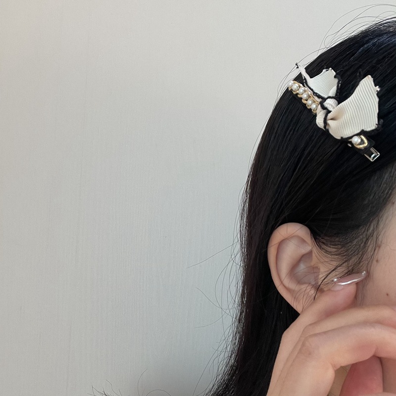 韩国新款小香风蝴蝶结布艺珍珠一字夹鸭刘海夹发卡发夹新