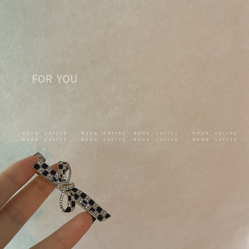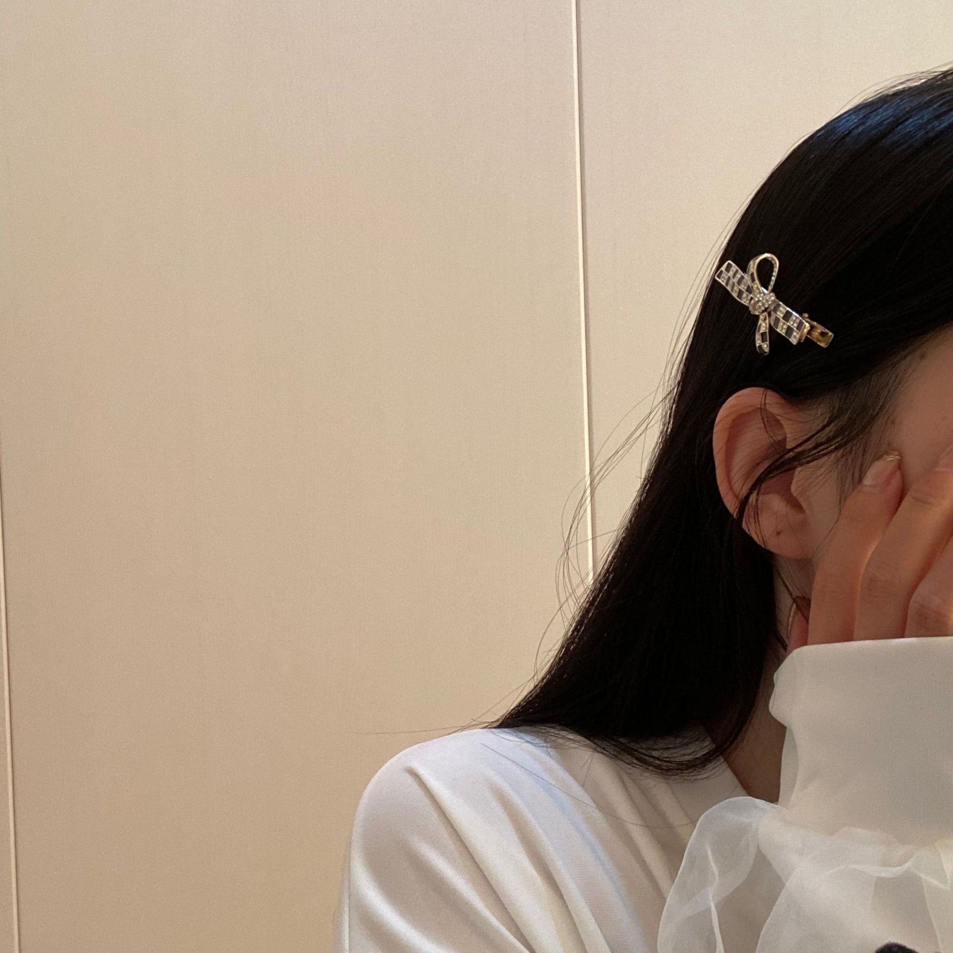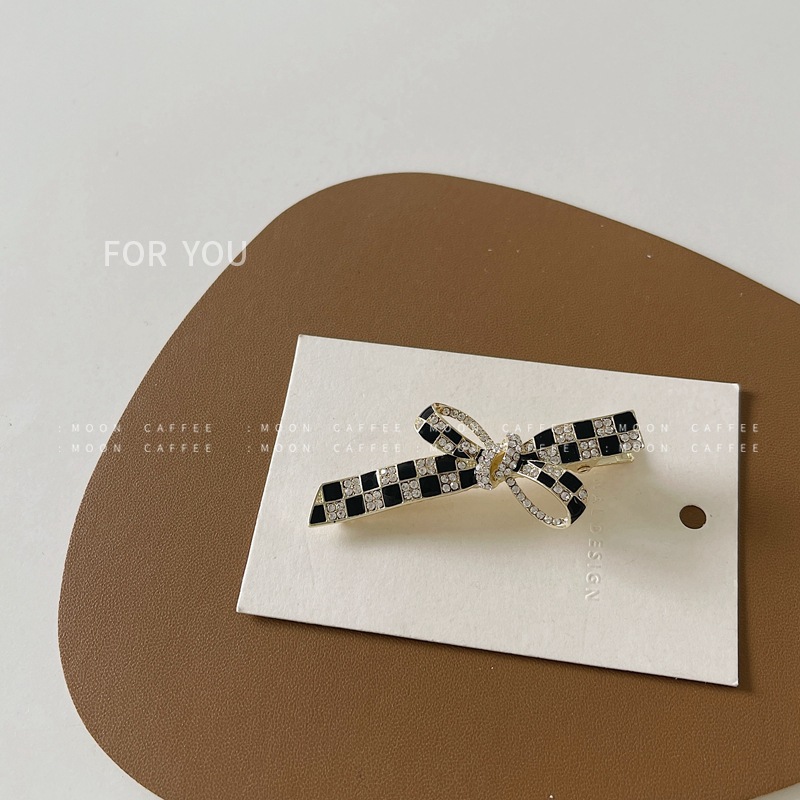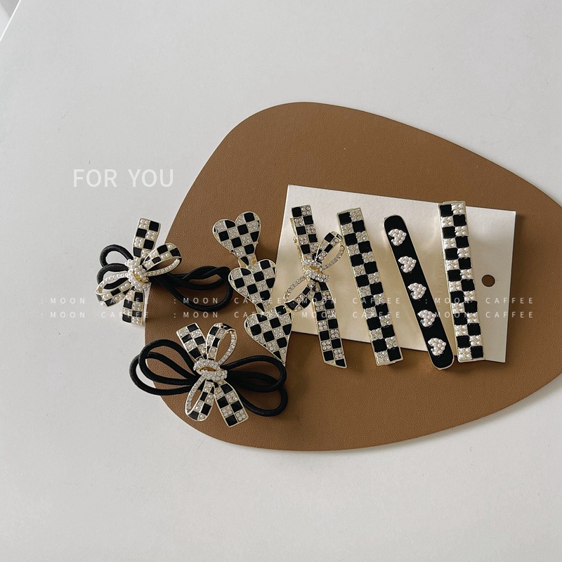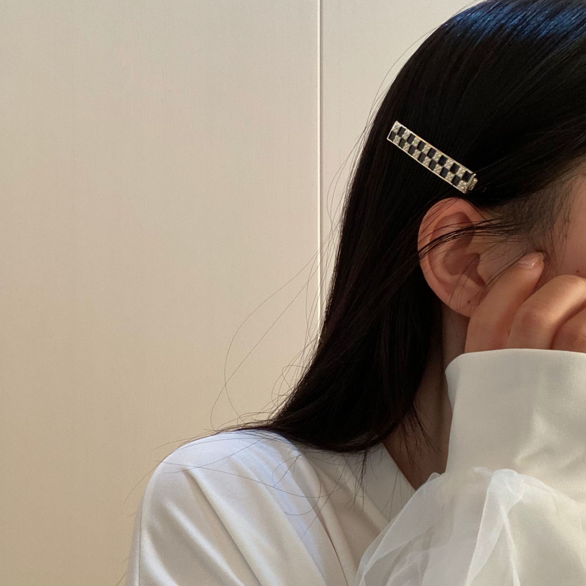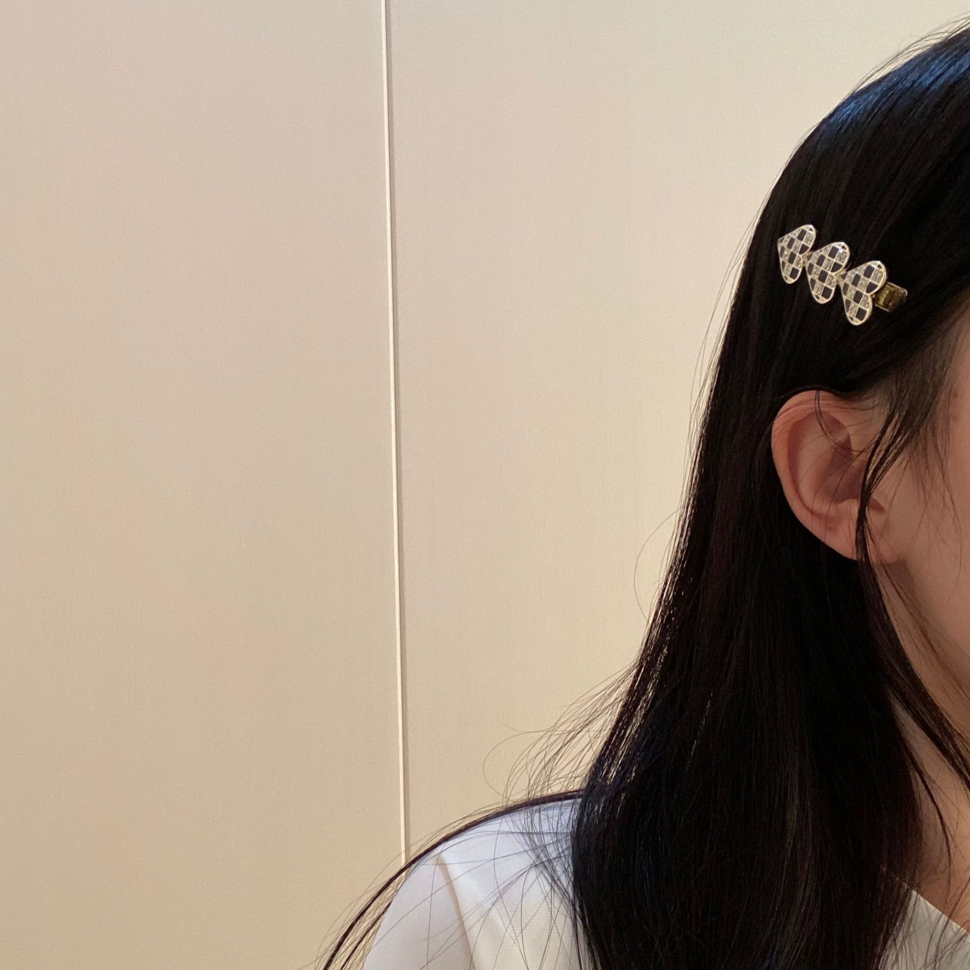 仰慕同款爱心棋盘格镶钻珍珠一字夹边夹刘海夹个性百搭发夹潮