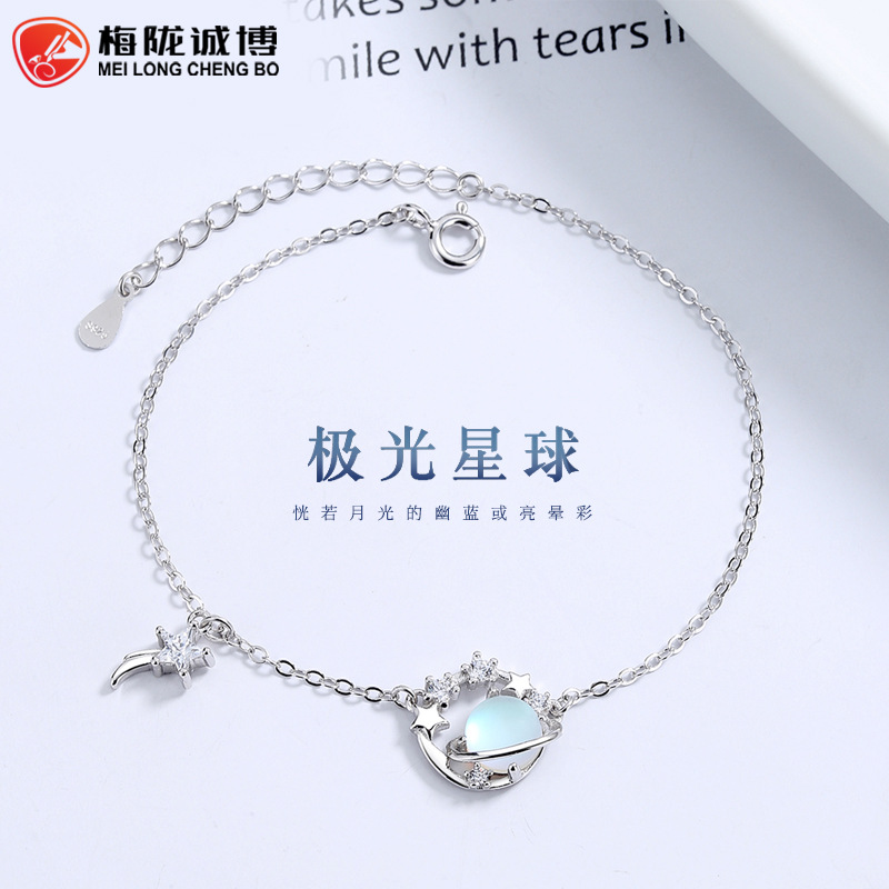 极月光石星球水晶手链女ins925纯银韩版简约个性猫眼石闺蜜手饰品