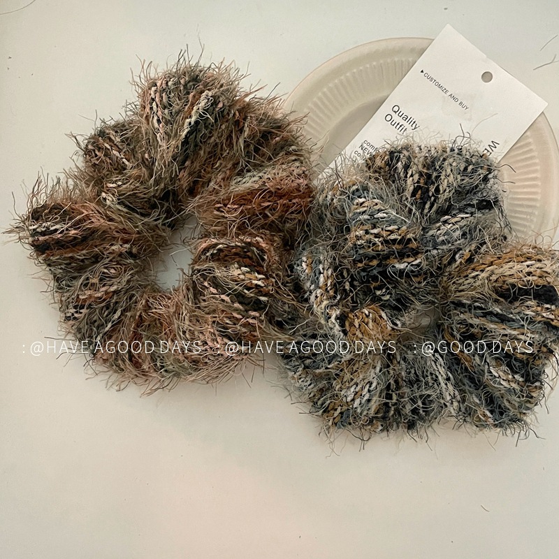 高级感彩色毛线编织大肠发圈个性气质马尾发绳小众设计感韩版发饰