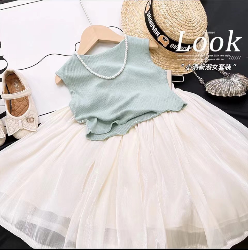 2025韩版女童无袖背心套装夏季新款洋气小清新淑女上衣长裙两件套