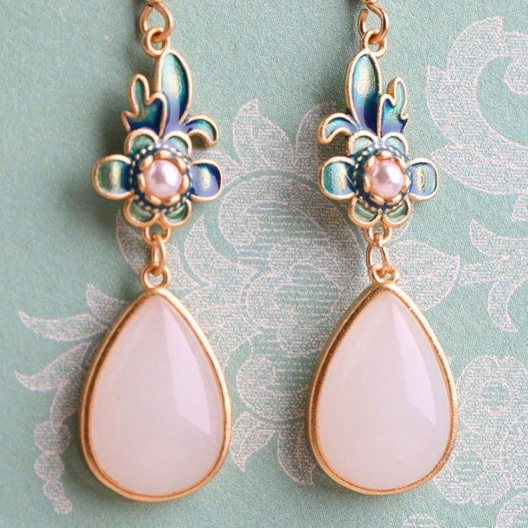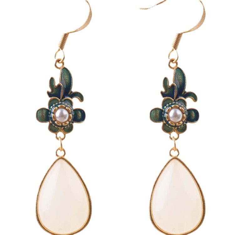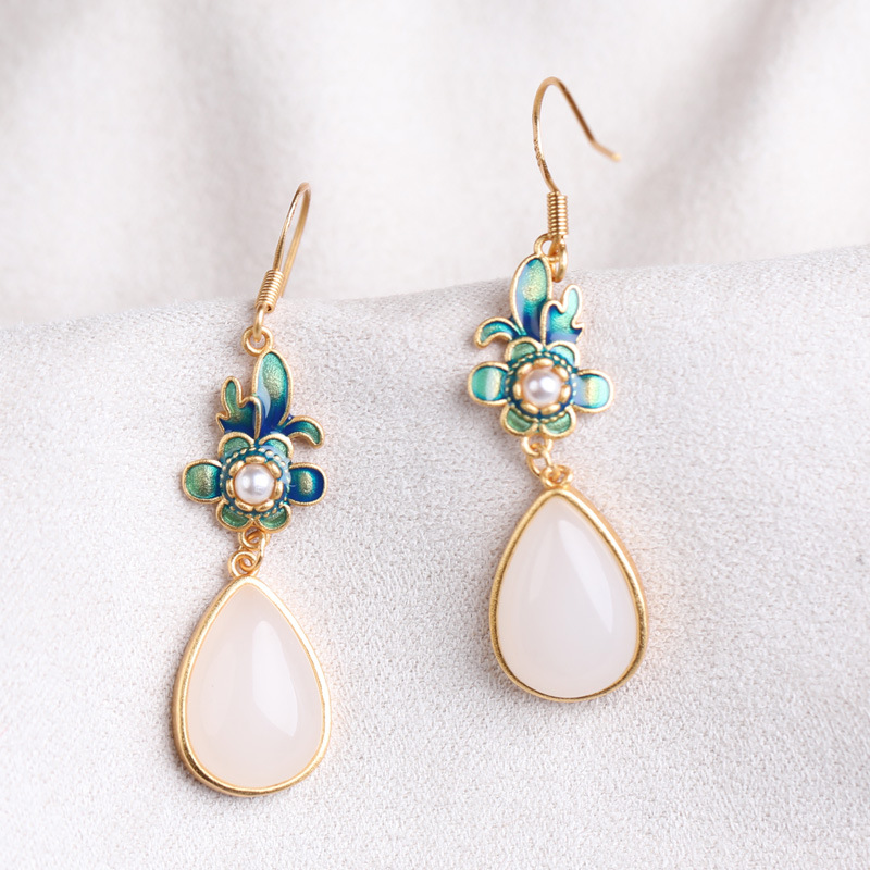 New spring ethnic style earrings, stud earrings, retro court earrings, cheongsam, gold-inlaid jade earrings, Hanfu accessories for girls