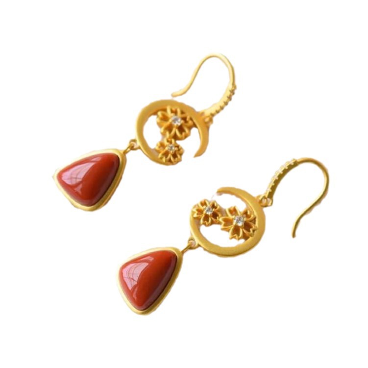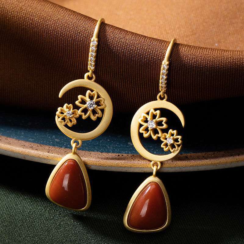 心音南红耳坠女士耳钉镀针金色个性月亮时尚耳环耳饰饰