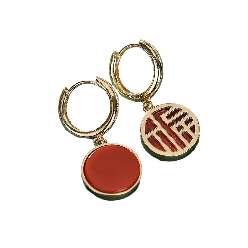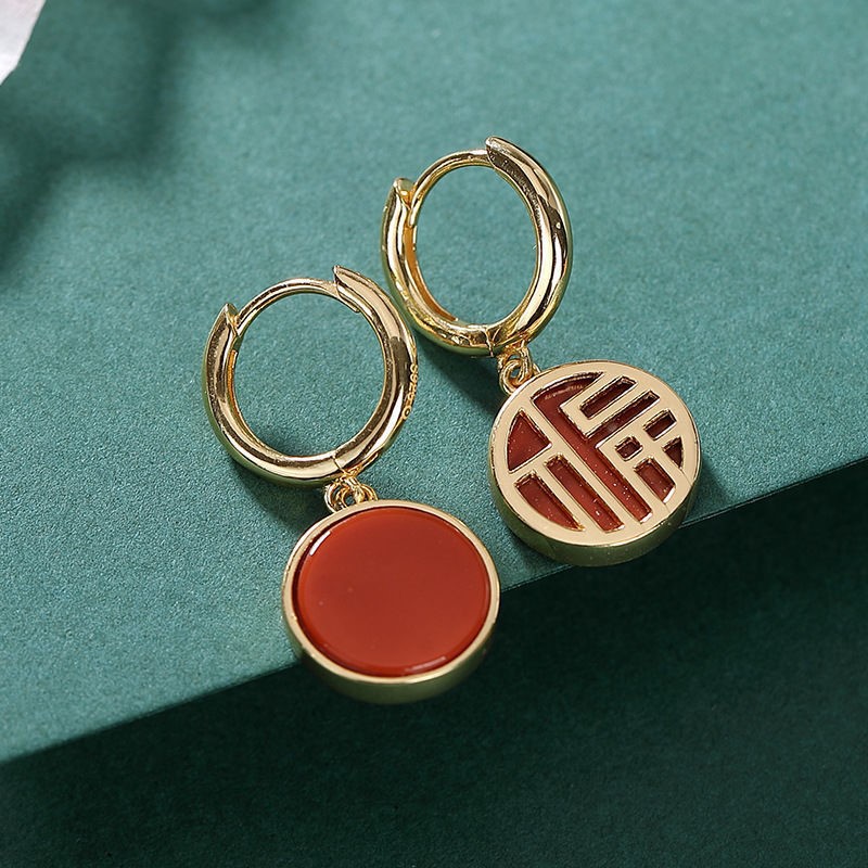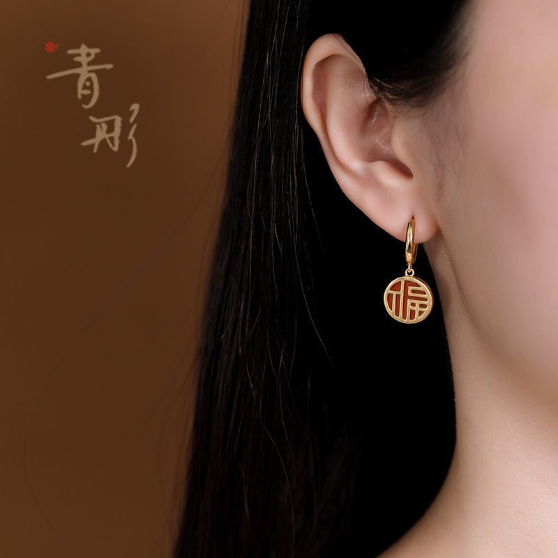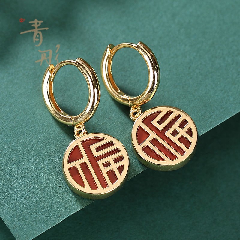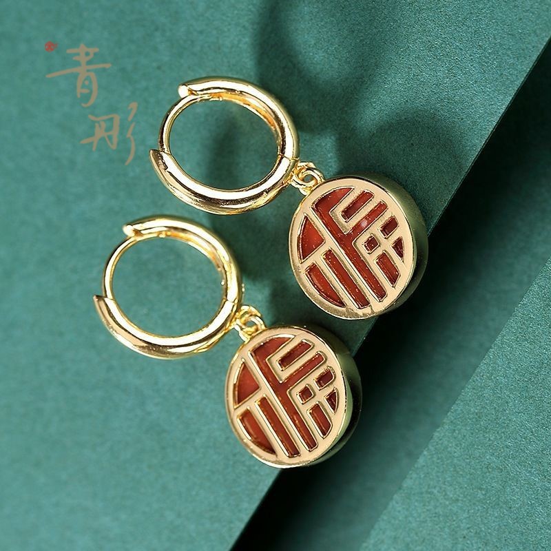 纯银古法金故宫上新红珐琅古风中式古典福字中国红吉祥喜庆国风女