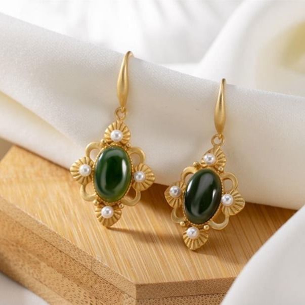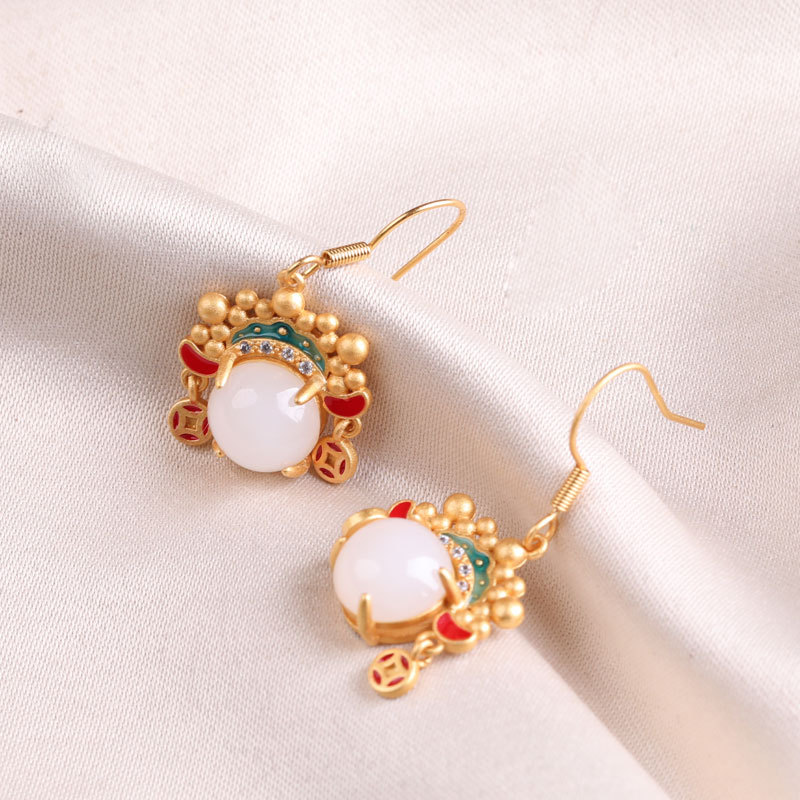 春夏季国潮耳饰配饰古法镀金玉质耳坠中国风戏剧刀马旦脸谱耳环女